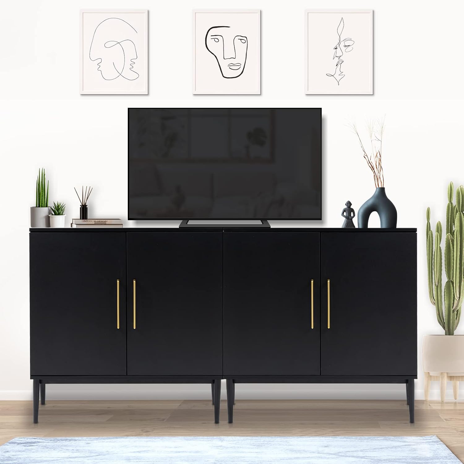 Free Standing Cabinet Black Wood for Living Room, Bedroom, Dining Room, Hallway