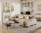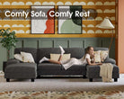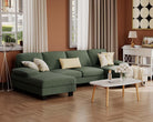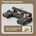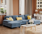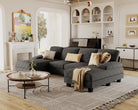 Furmax Sectional Couches for Living Room, U-Shaped Sofa Couch with Linen Fabric, 4 Seat Sofa Set with Double Chaise for Apartment (Fabric, Grey)