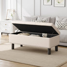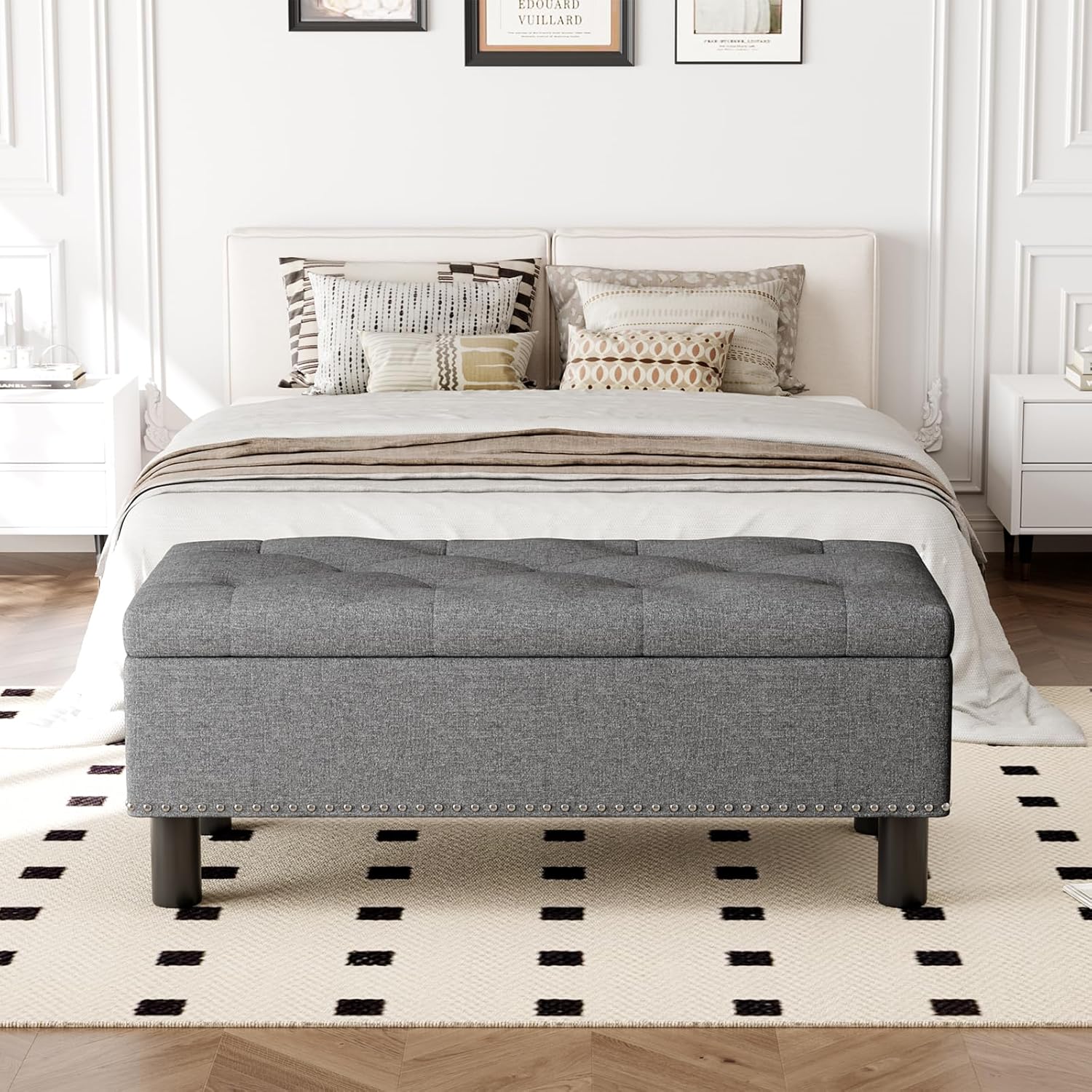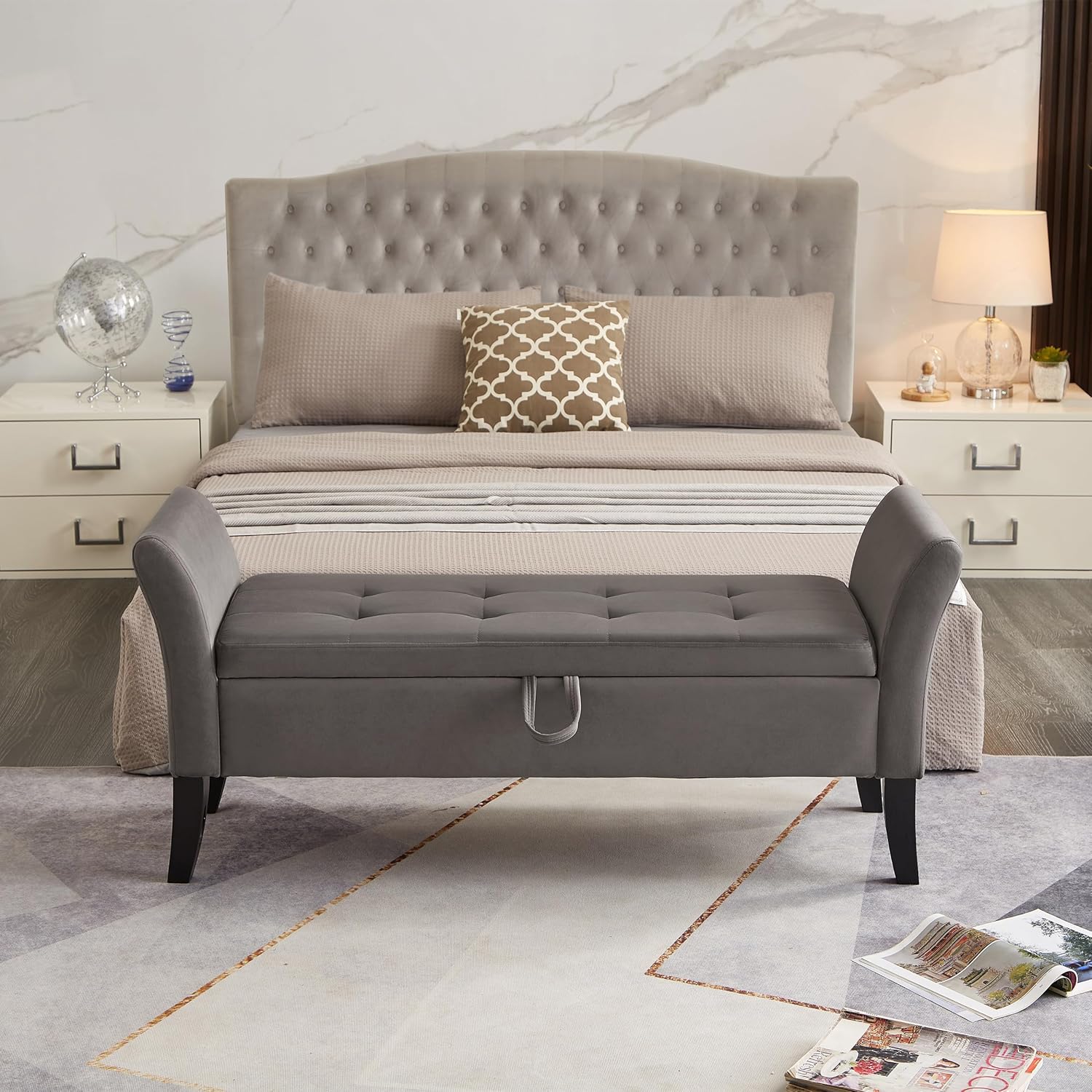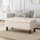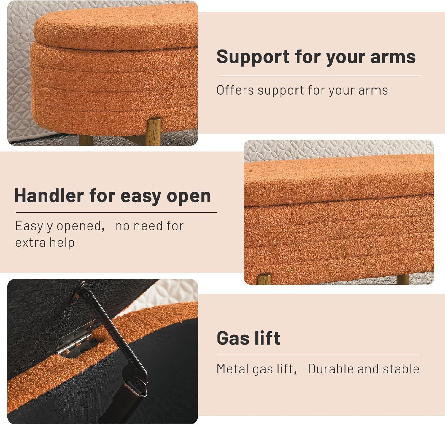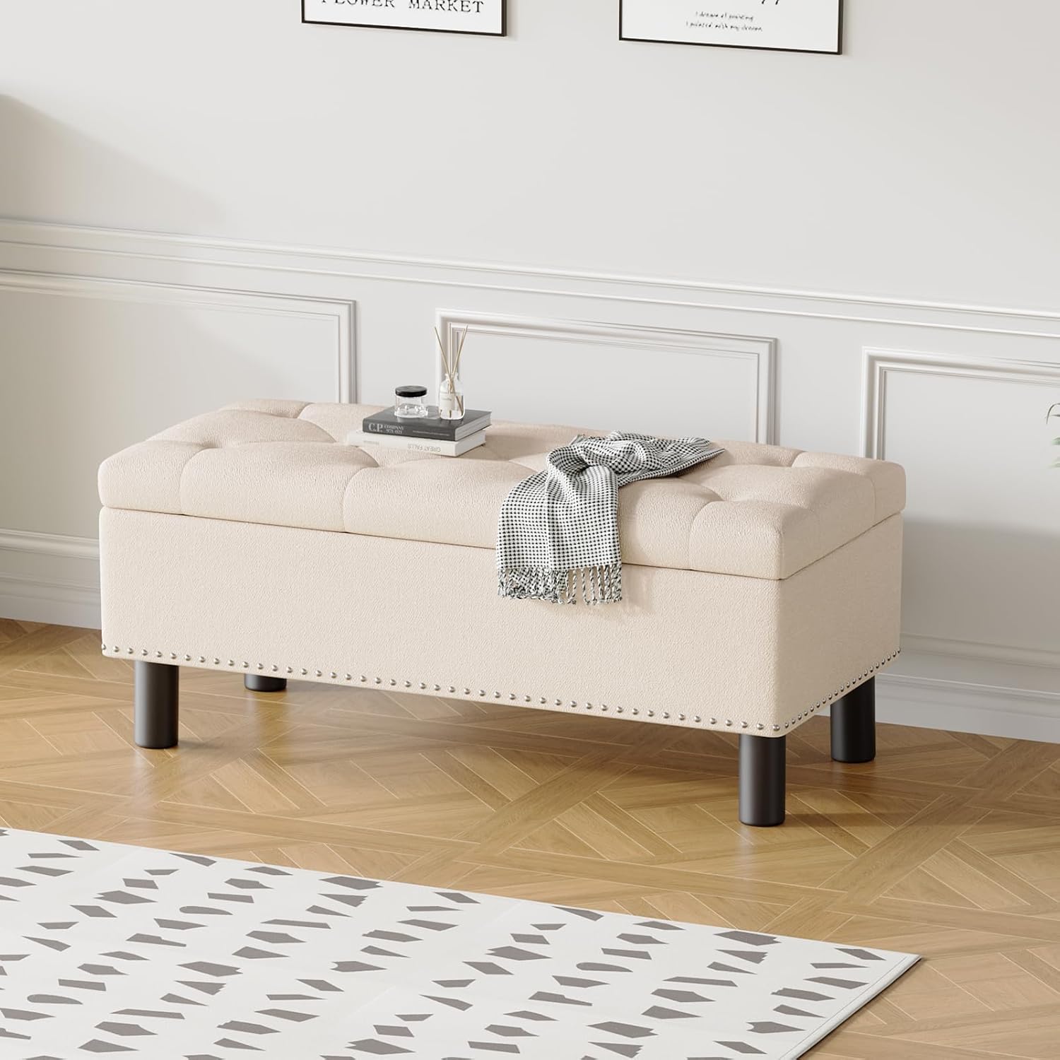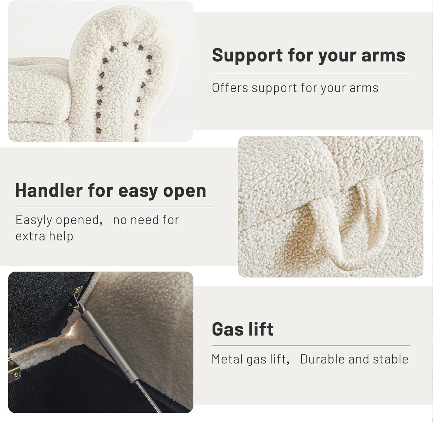Furniliving Modern Storage Ottoman Bench, Sherpa Ottoman End of Bed Bench with Solid Wood Legs Upholstered Ottoman Benches with Storage Indoor Bench