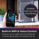 - BUILT-IN WIFI AND VOICE CONTROL: Pair your ice maker with the SmartHQ app to monitor device status and schedule fresh ice. Receive automatic software updates that include ice maker features and access voice control capabilities through Alexa and Google