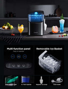 - 3 Ice Cube Sizes: Our ice maker features three adjustable bullet ice cube sizes (small, medium, large), which melt slowly and are stick-resistant. This product comes with a portable 1.5lbs ice basket, offering a variety of ice combinations.