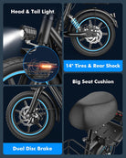 - Ample Storage & Smooth Ride: The scooter features a large detachable middle basket and a small rear basket, offering plenty of room for cargo. The 9.5" wide deck can accommodate a small pet. Ride smoothly with our thick, shock-absorbing 12" tires.