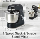 Hamilton Beach Electric Stand Mixer, 4 Quarts, Dough Hook, Flat Beater Attachments, Splash Guard 7 Speeds with Whisk, Black