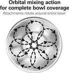 - THOROUGH MIXING AND COMPLETE BOWL COVERAGE. As you mix, each stand mixer attachment rotates around the entire bowl as it spins at your selected speed. This planetary mixing action ensures that ingredients are mixed thoroughly and provides complete bowl coverage.