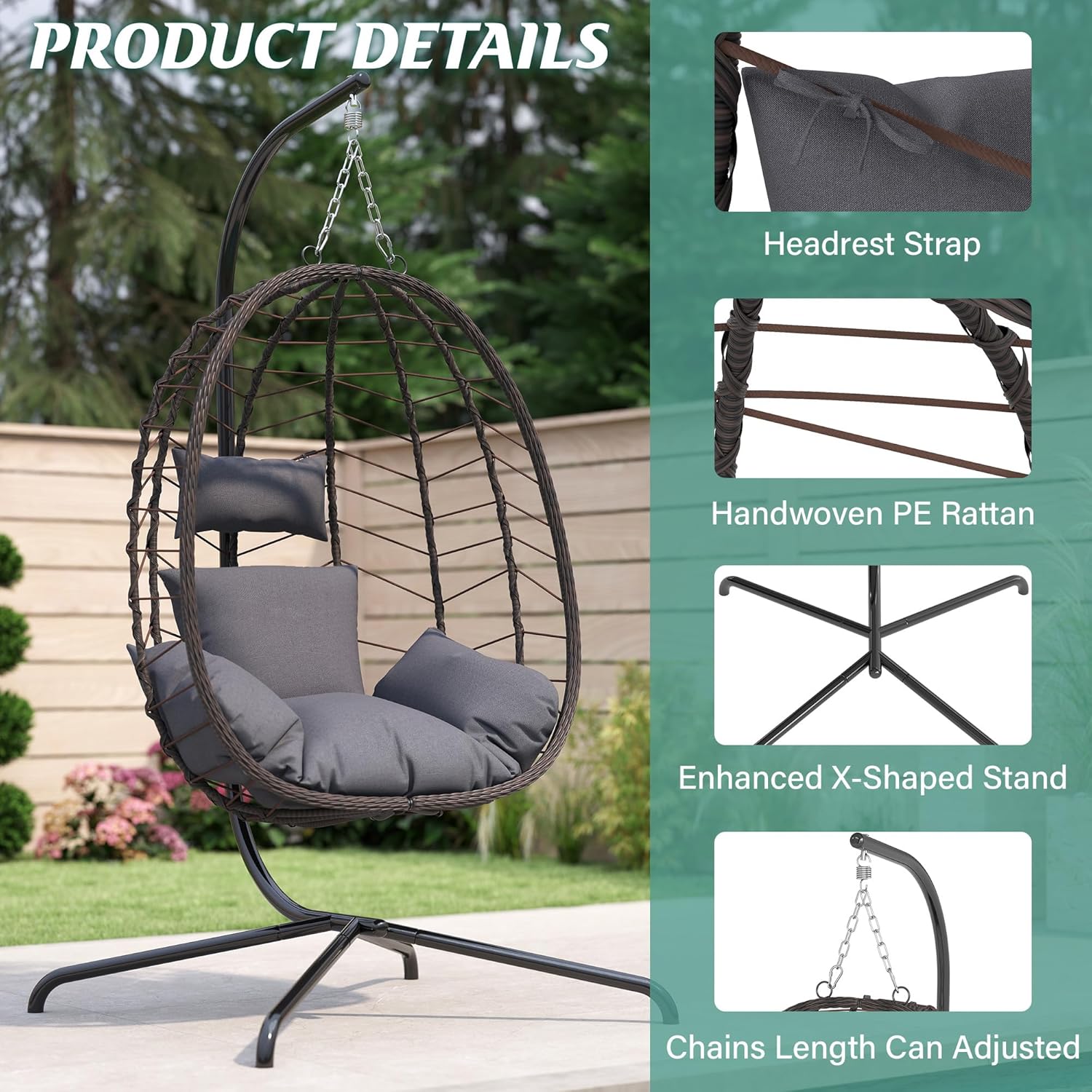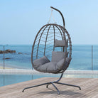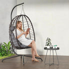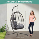 Hanging Egg Chair with Stand, Swinging Egg Chair Outdoor Indoor, Hanging Basket Chair with Cushion, Patio Wicker Hammock Chair 350lbs Capacity for Bedroom, Balcony, Backyard, Garden (Grey)