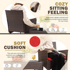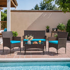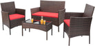 The black tempered glass top sits securely between the reinforced exterior wicker finish.