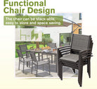 • Stackable Chairs: The patio table and chairs includes six chairs and a table, so you don't have to worry about not having enough chairs. It is ideal for dining with family and gathering with friends. The six chairs are stackable, which saves a lot of storage space and makes it easy to carry