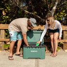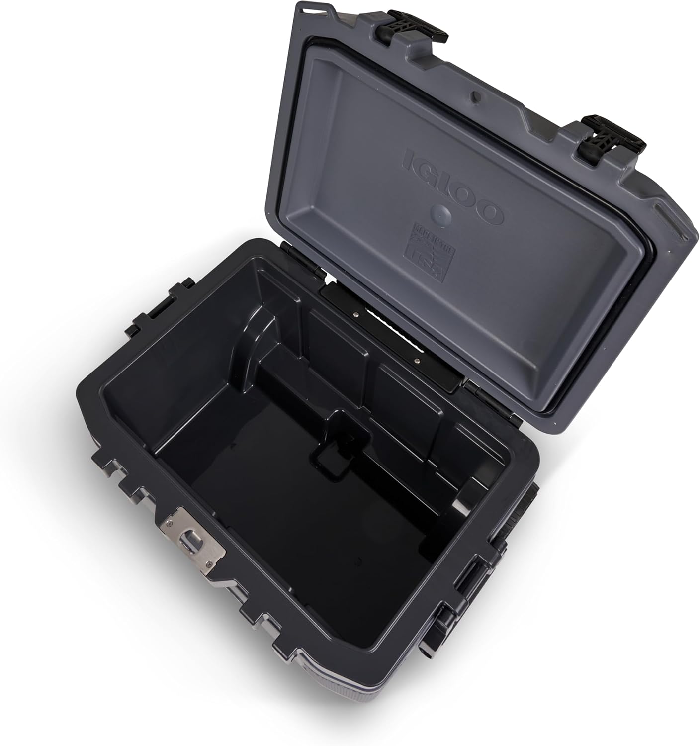 Extra-thick insulated body and lid provide advanced ice retention for long weekends away. The lid locking plate doubles as a bottle opener, threaded drain plug that makes draining effortless and oversized hinges to extend overall product life.