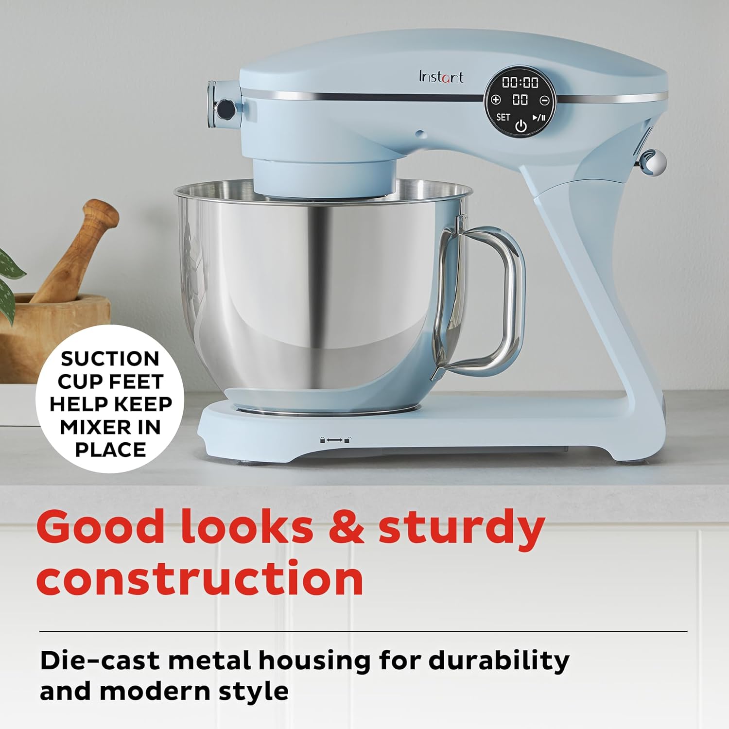 • Stable operation: suction cup feet keep mixer in place during use