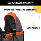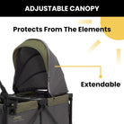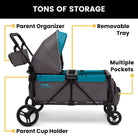 • TONS OF STORAGE: Each wagon comes with an expandable bag, tons of pockets, parent organizer, 2 parent cupholders and a plastic child's tray with cup holders for snacks and drinks