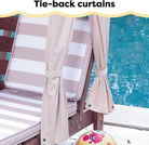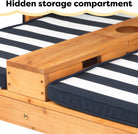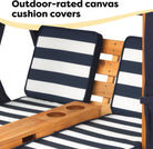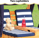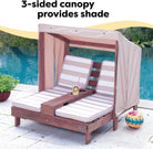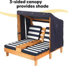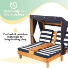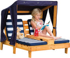 KidKraft Wooden Outdoor Double Chaise Lounge with Cup Holders, Kid's Patio Furniture, Honey with Navy and White Striped Fabric, Gift for Ages 3-8