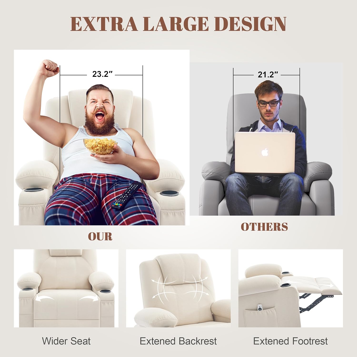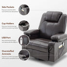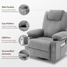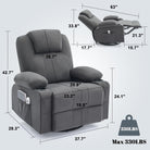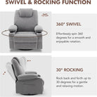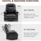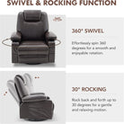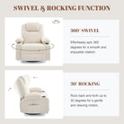 Large Swivel Rocking Recliner with Heating and Massage Function, 360 Degree Swivel Rocking Single Sofa