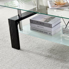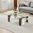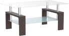 Living Room Rectangle Coffee Table, Tea Table Suitable for Waiting Room, Modern Side Coffee Table with Wooden Leg, Glass Tabletop