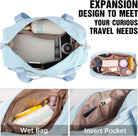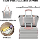 - Practical Bag Attached: The duffel bag and travel backpack are both designed with the trolley sleeve, so you can keep your property safe by attaching them to the retractable luggage handle. The extra space in the duffel bag allows you to pack more luggage for your convenience. The laptop compartment of the travel backpack protects your computer from damage.