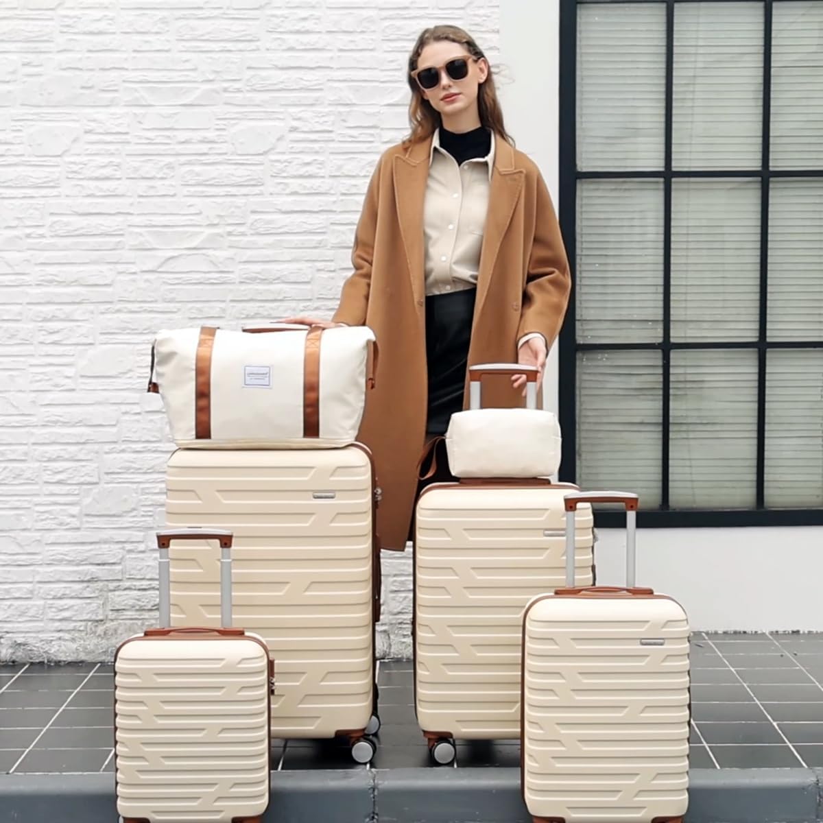 - Premium Hardshell Luggage Set: Engineered with high-impact ABS material enhanced by an advanced scratch-resistant coating, these luggage sets for women seamlessly blend rugged durability with a distinctive ribbed geometric texture design – guaranteeing instant visibility even in the busiest baggage claim areas