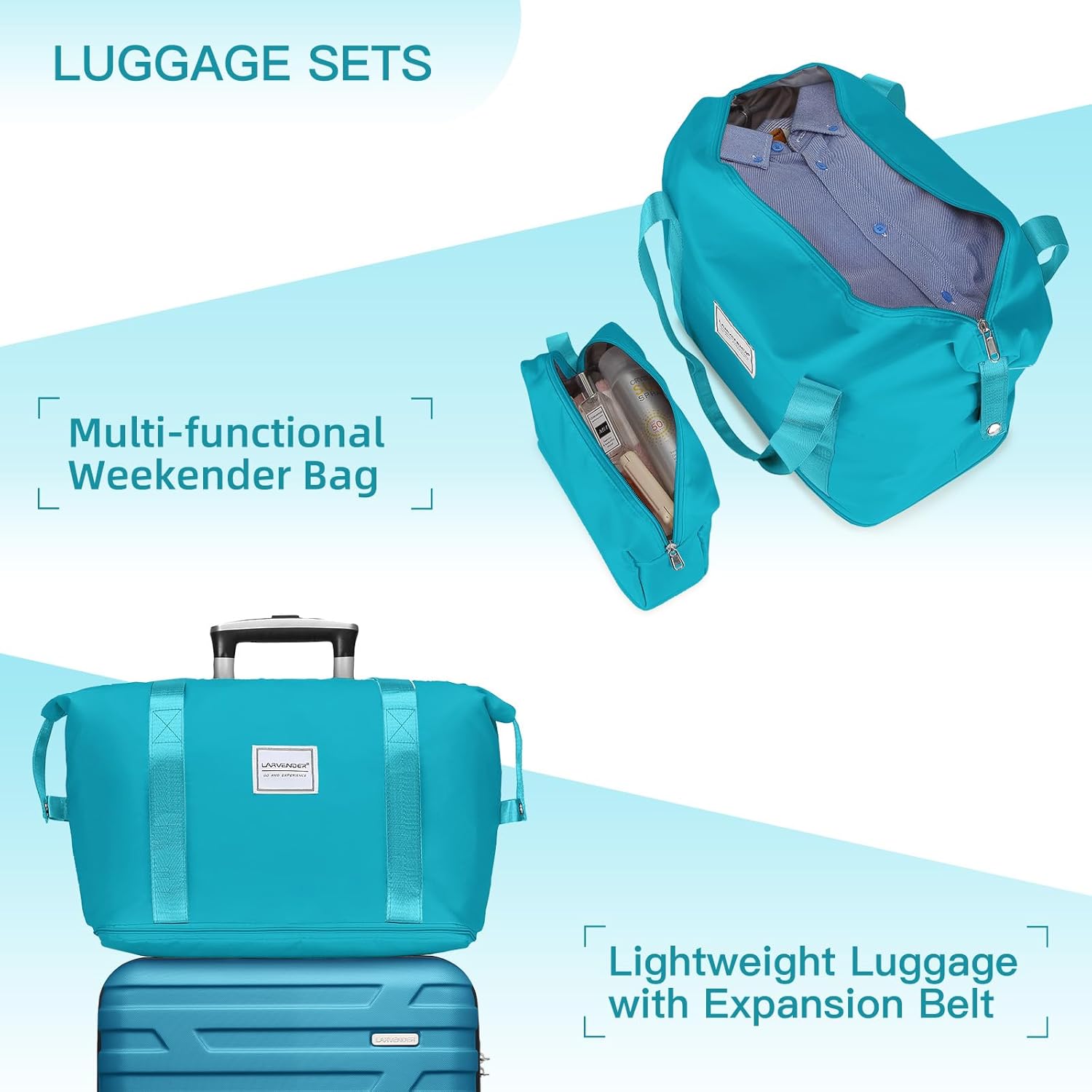 - Expandable Suitcase Sets: 6 piece set offers 18"/20" carry on suitcase, a 24'' checked suitcase, a 28'' large luggage, a weekender travel bag and a toiletry bag. Expand the luggage capacity by 25% with smooth and durable expandable zipper (Only 24/28inch)
