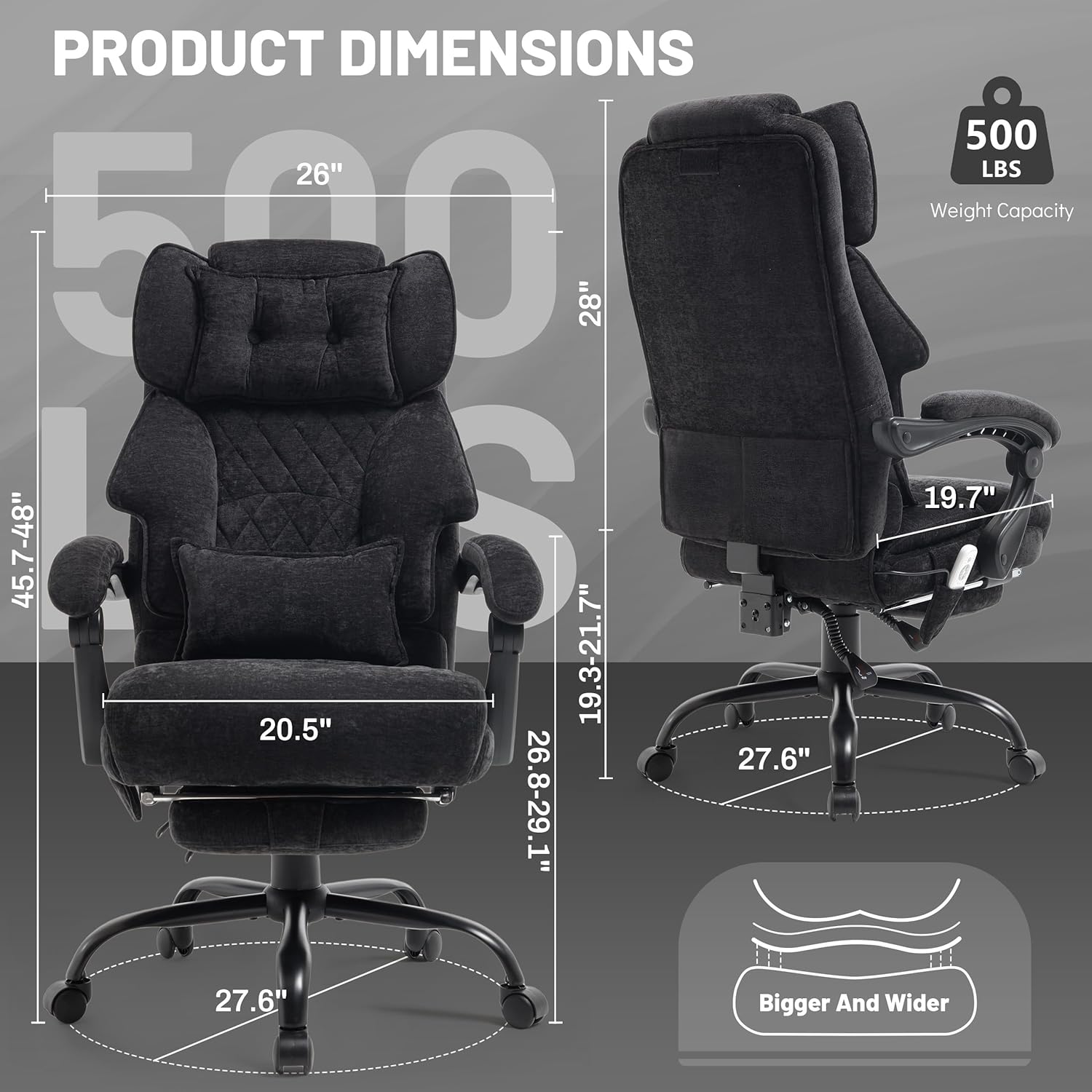 Massage Office Chair with Footrest, Large and Tall Leather Office Chair 500 lbs