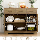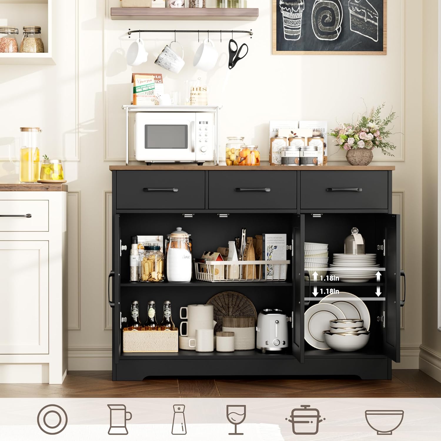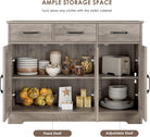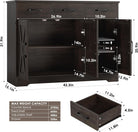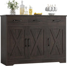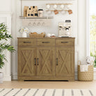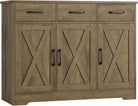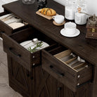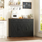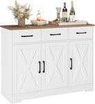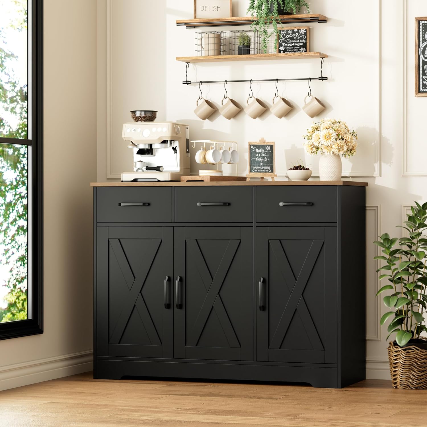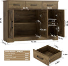 Modern farmhouse sideboard, barn door buffet storage cabinet with drawers and shelves, wooden coffee bar with storage