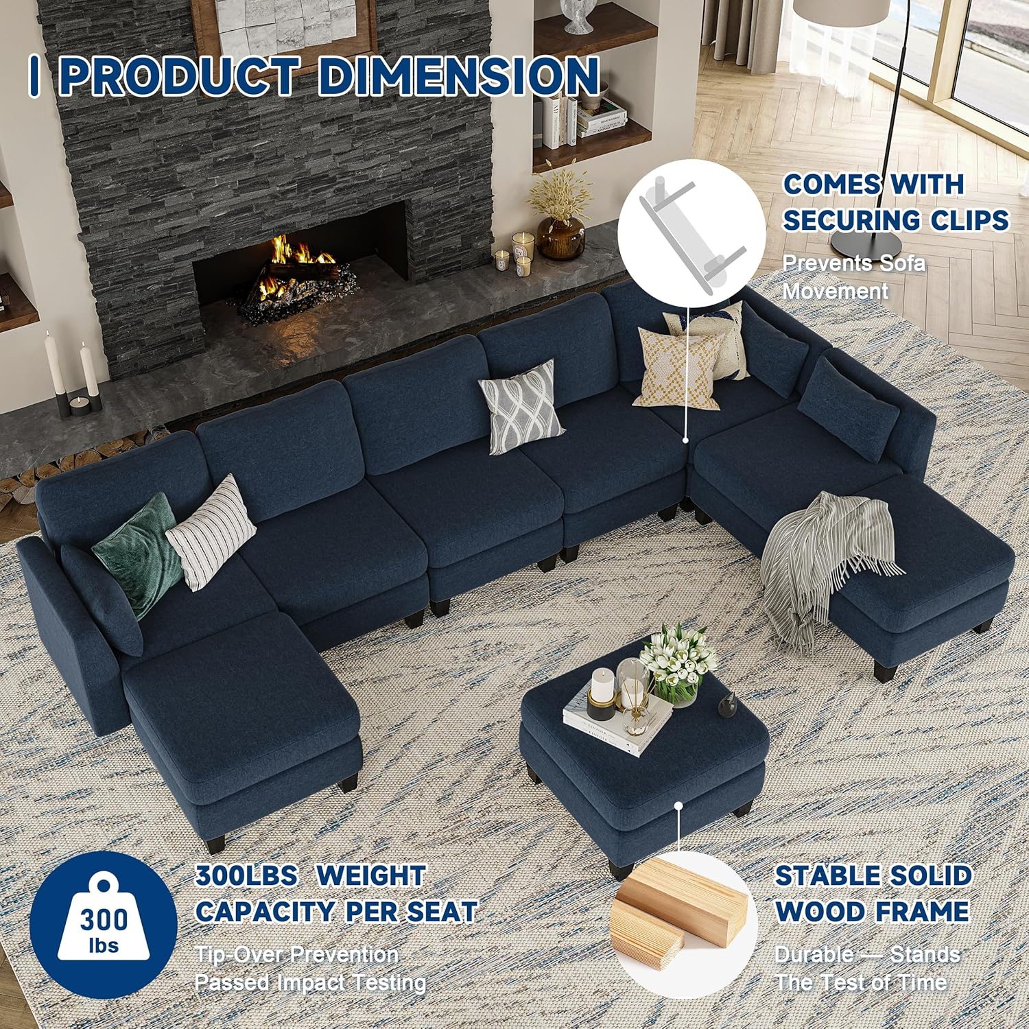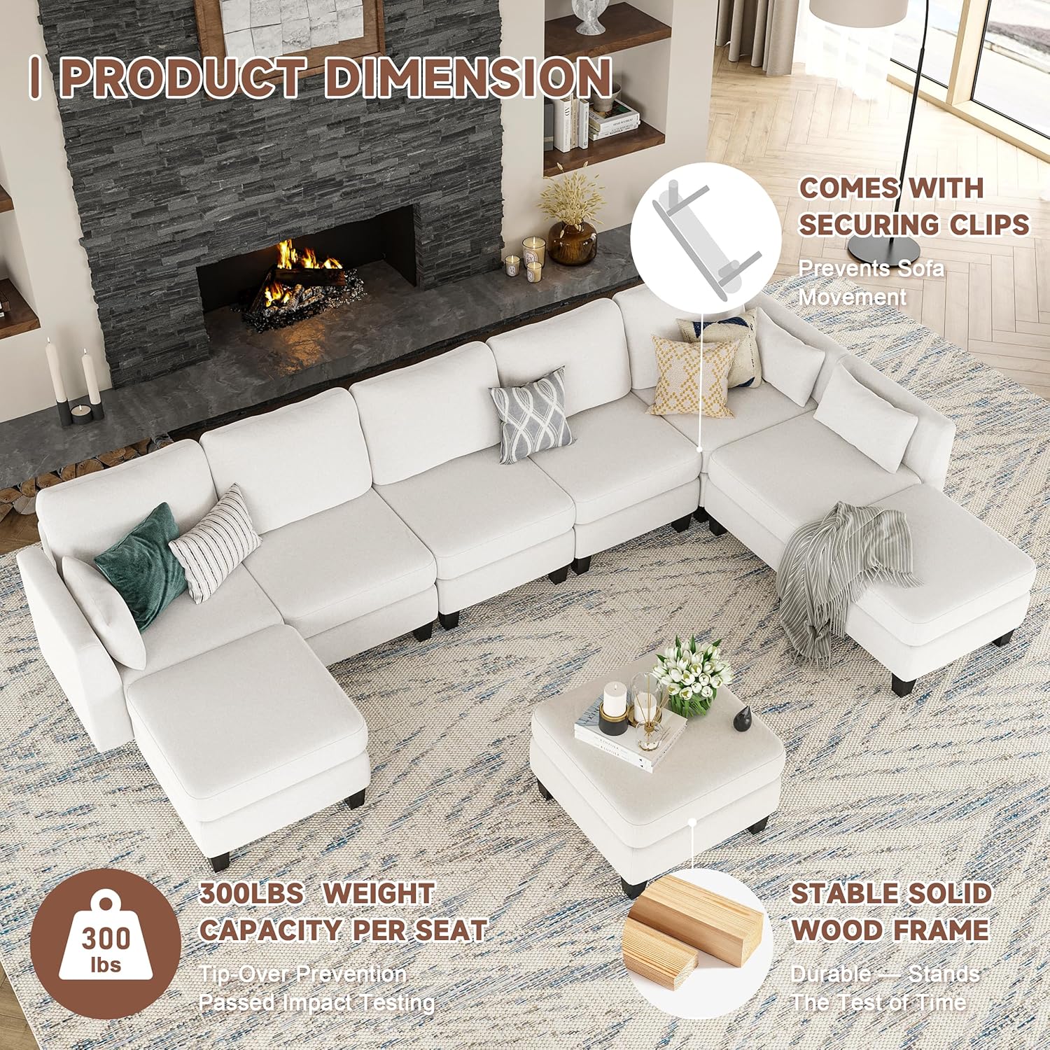 Soft & Comfortable Seating: Our modular sectional sofa features high-quality memory foam and premium spring cushions, offering excellent resilience and comfort. The plush armrest and backrest cushions provide great support for extended periods