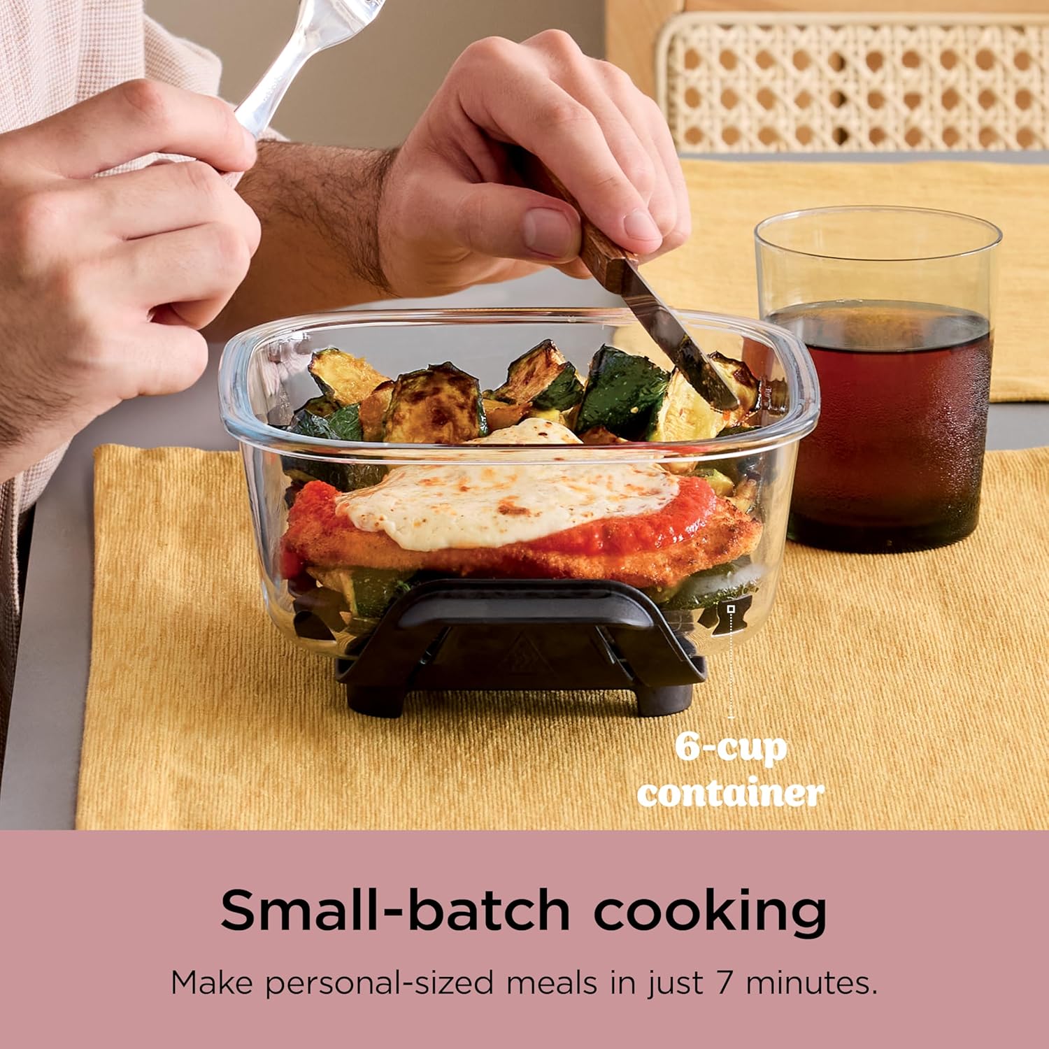 Ninja Crispi 4-in-1 Portable Glass Air Fryer Cooking System, 1500W, 4QT & 6-Cup TempWare Glass Containers with Storage Lids, Microwave, Freezer & Dishwasher Safe