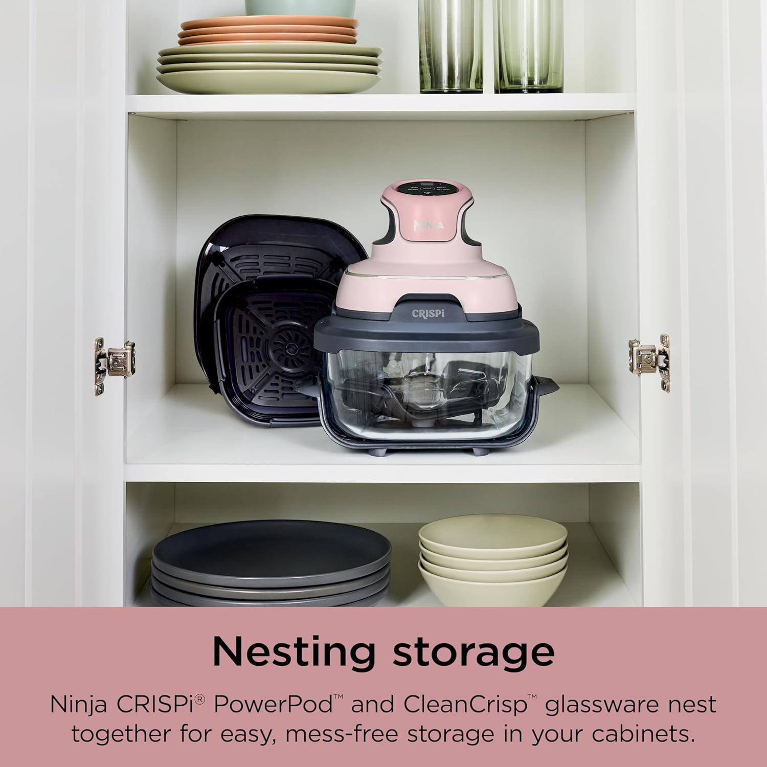 - ALL-IN-ONE SYSTEM: Includes the Ninja Crispi PowerPod, 4-qt and 6-cup CleanCrisp glass containers, and 2 storage lids