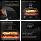 - HOT NEW FEATURES – A custom designed fuel tray that maximises airflow and delivers a powerful blast of searing flame allows the 12 pizza oven to maintain the ultra-high temperatures – load it up with real wood or charcoal, with no excess ash to clean