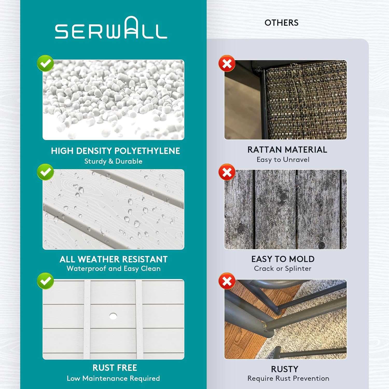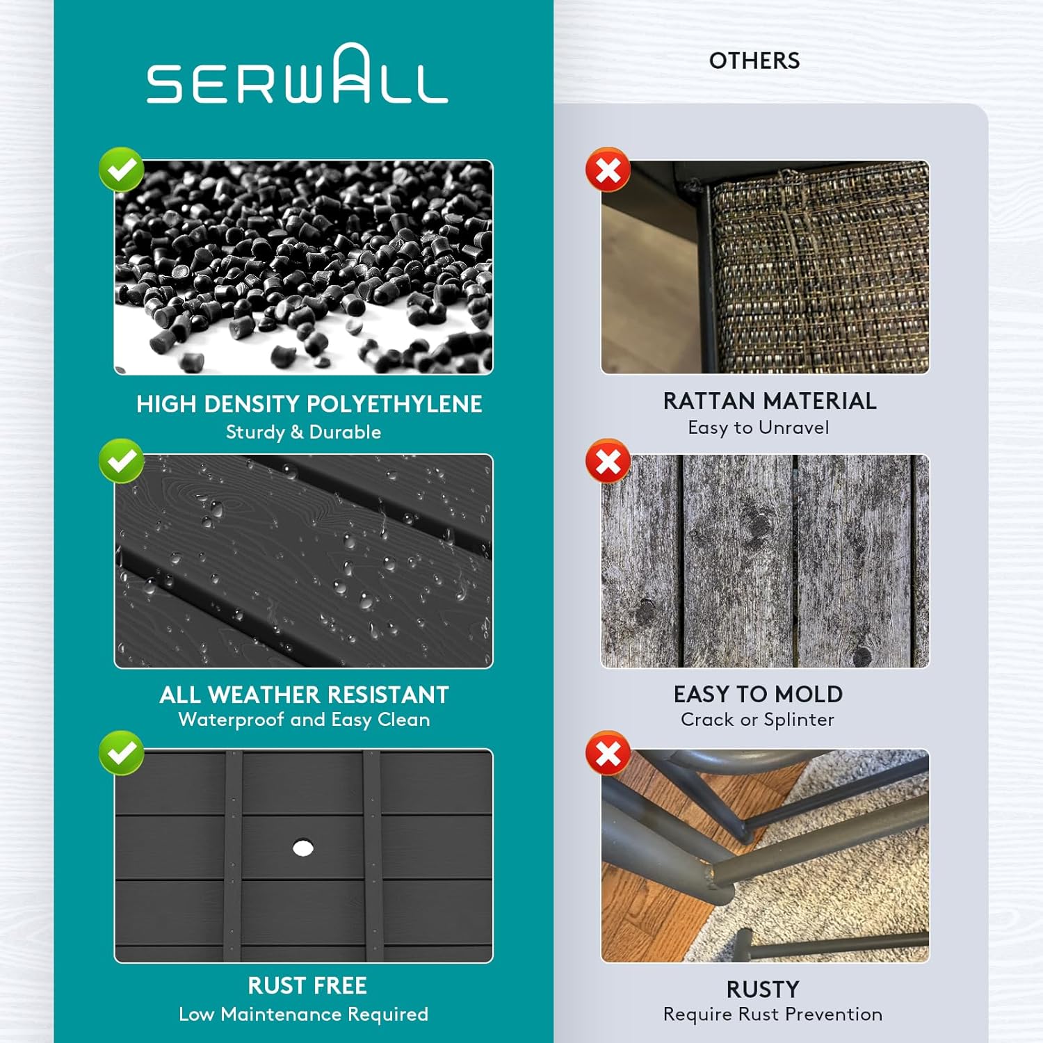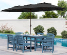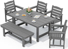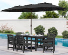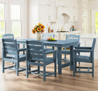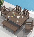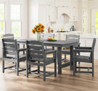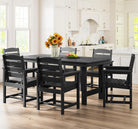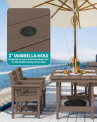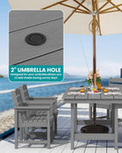 Outdoor HDPE Dining Table Set, 7-Piece Outdoor Dining Table Sets with Umbrella Hole Cut-Out Table and 6 Chairs