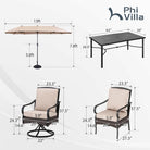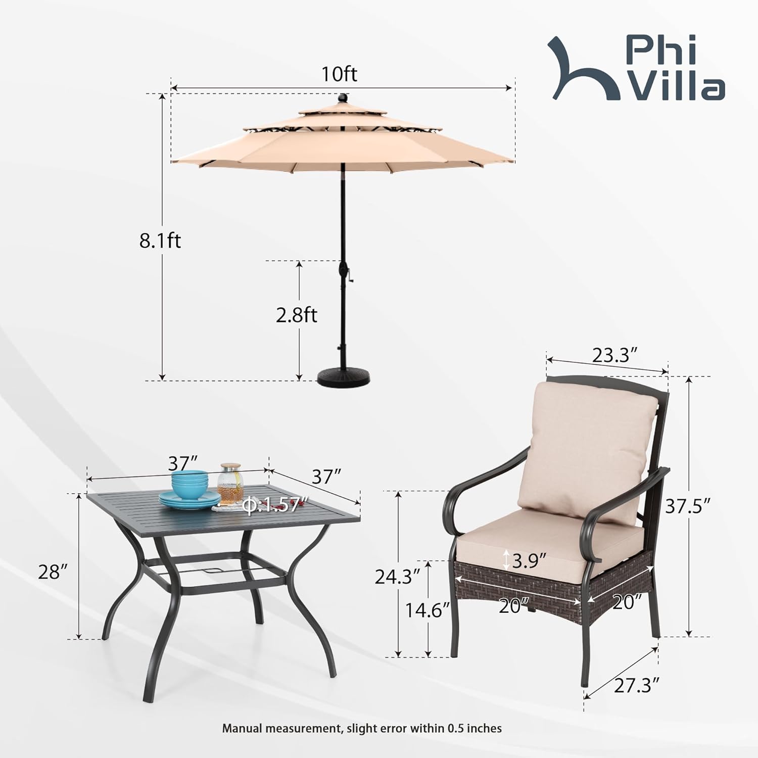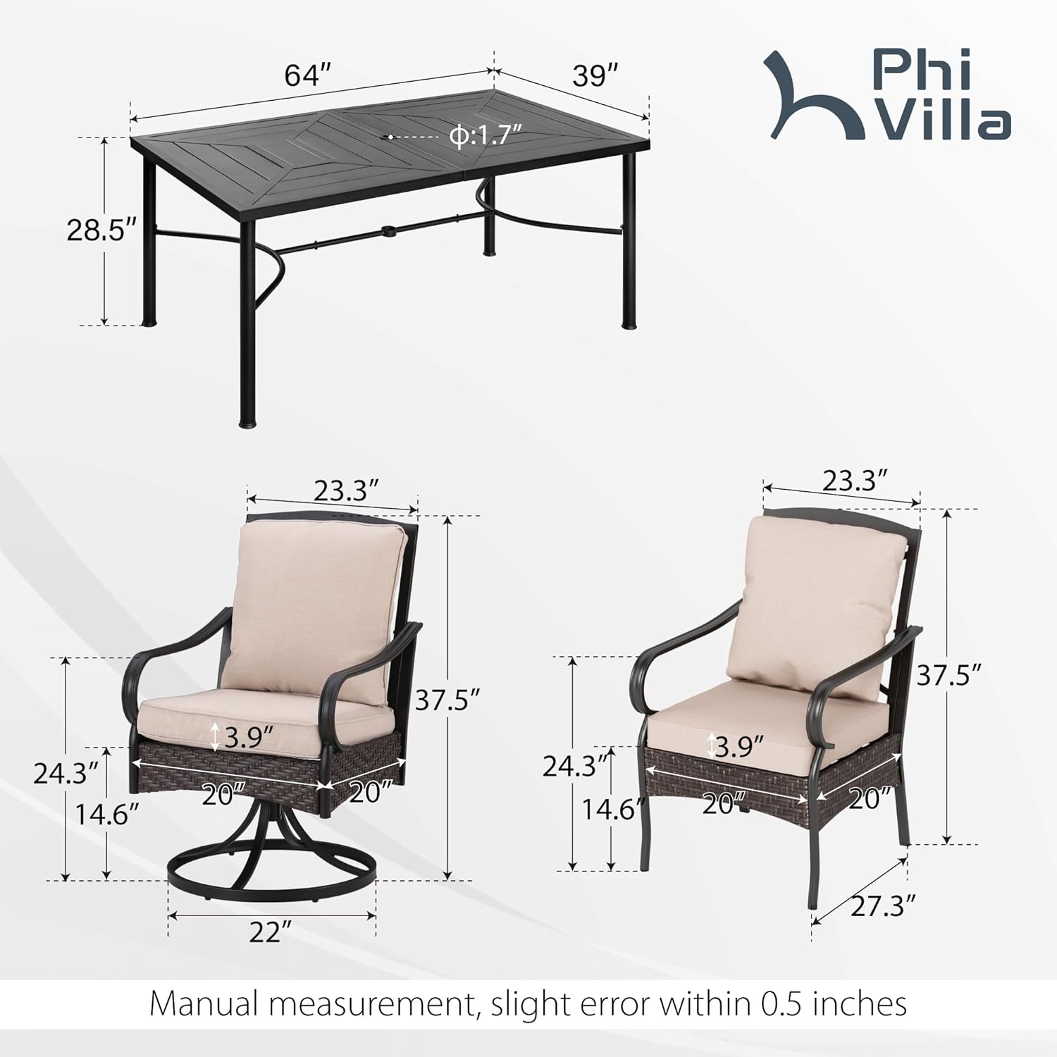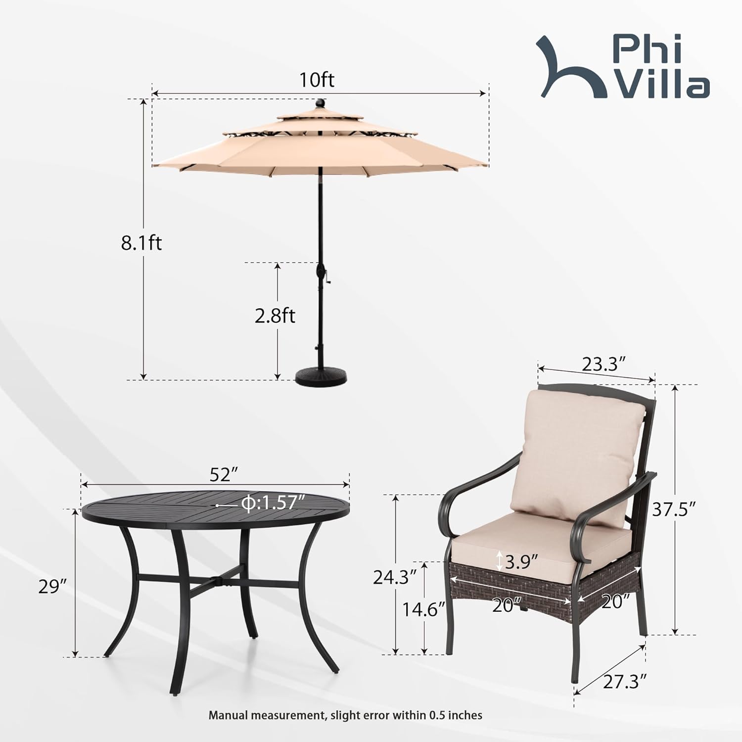 PHI VILLA 6-Piece Outdoor Dining Sets, All-Weather Patio Table and Chairs Set with Umbrella for 4, Heavy Duty Patio Round Table Set for Deck, 4 Extra Large Outdoor Swivel Chairs with Thick Cushions