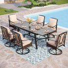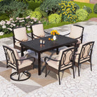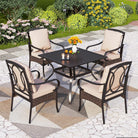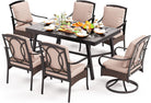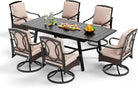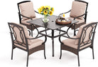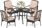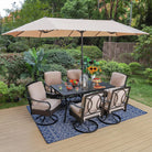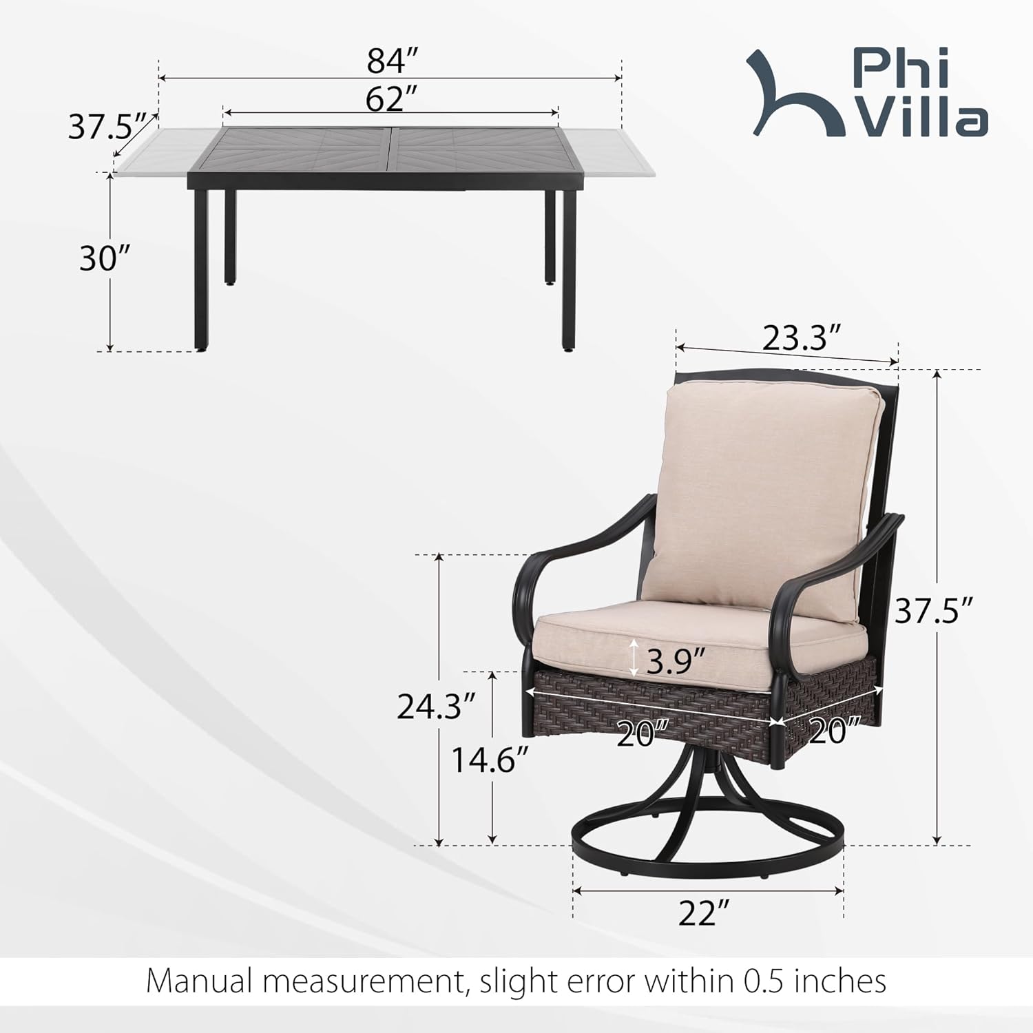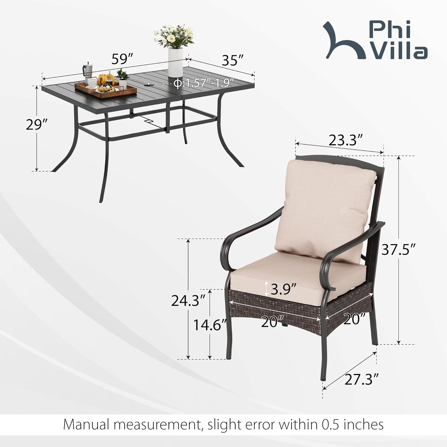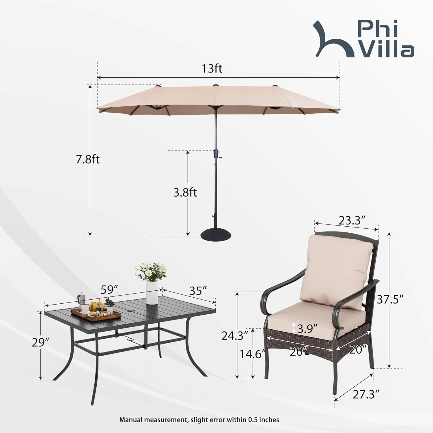 PHI VILLA 6-Piece Outdoor Dining Sets, All-Weather Patio Table and Chairs Set with Umbrella for 4, Heavy Duty Patio Round Table Set for Deck, 4 Extra Large Outdoor Swivel Chairs with Thick Cushions