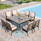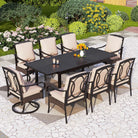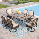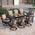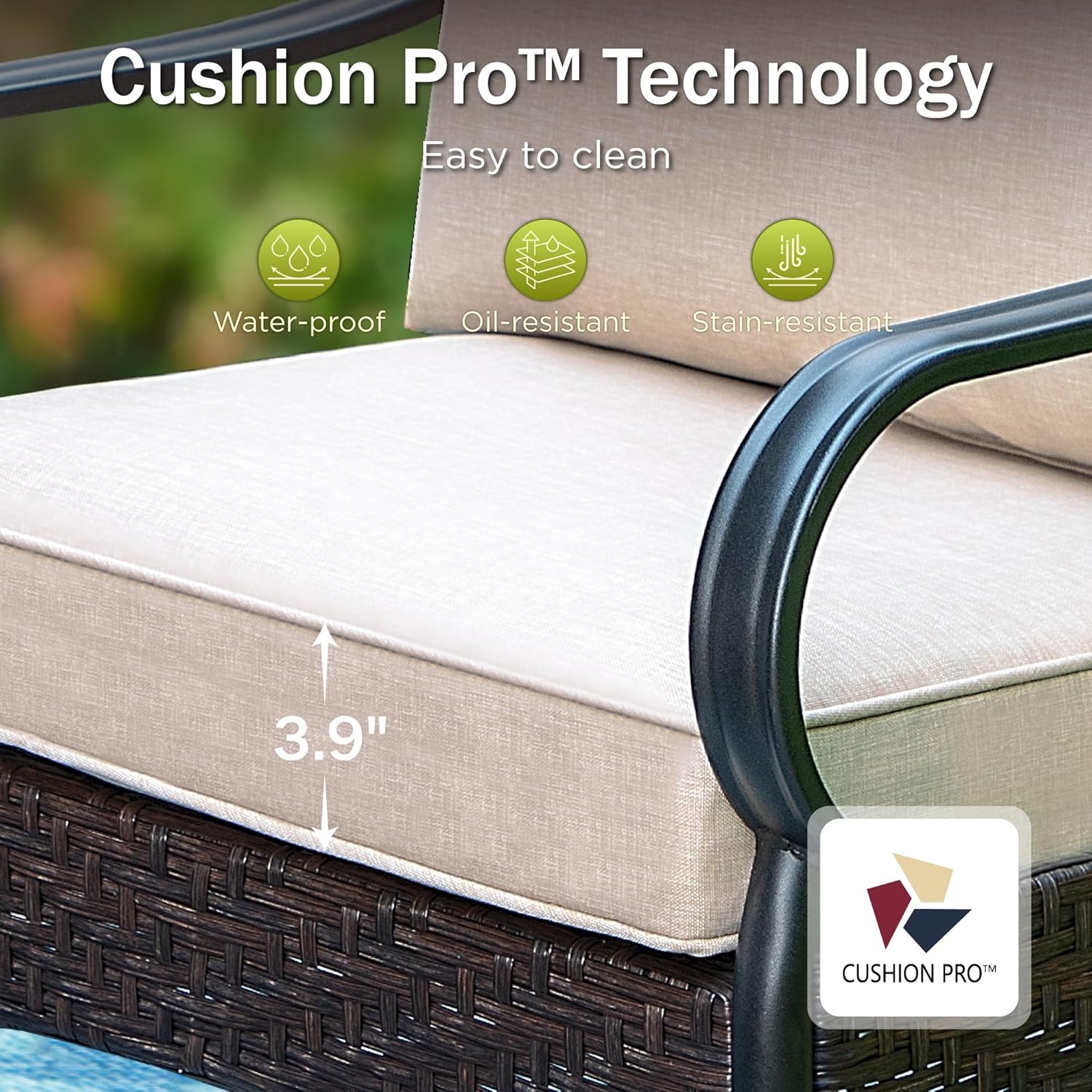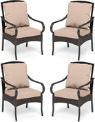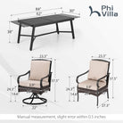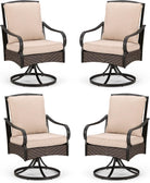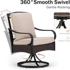 - 𝟑𝟔𝟎 𝗗𝗲𝗴𝗿𝗲𝗲 𝗦𝘄𝗶𝘃𝗲𝗹 𝗖𝗵𝗮𝗶𝗿𝘀: The frames of our outdoor dining chairs are made of E-coated metal steel decorated with wicker, stylish and sturdy. They are designed with 360 degree swivel,curved armrests and gentle rocking seats, and you can turn to any direction you prefer