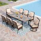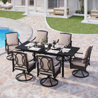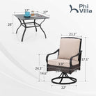 - 𝗖𝗼𝗺𝗳𝗼𝗿𝘁𝗮𝗯𝗹𝗲 𝗣𝗮𝗱𝗱𝗲𝗱 𝗖𝘂𝘀𝗵𝗶𝗼𝗻𝘀: Every swivel metal dining chair comes with extra large seat cushion and soft pillow, easy to clean. All cushions and pillows are made of texture fabric,which is UV resistant,weather resistant, does not discolor easily