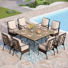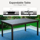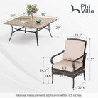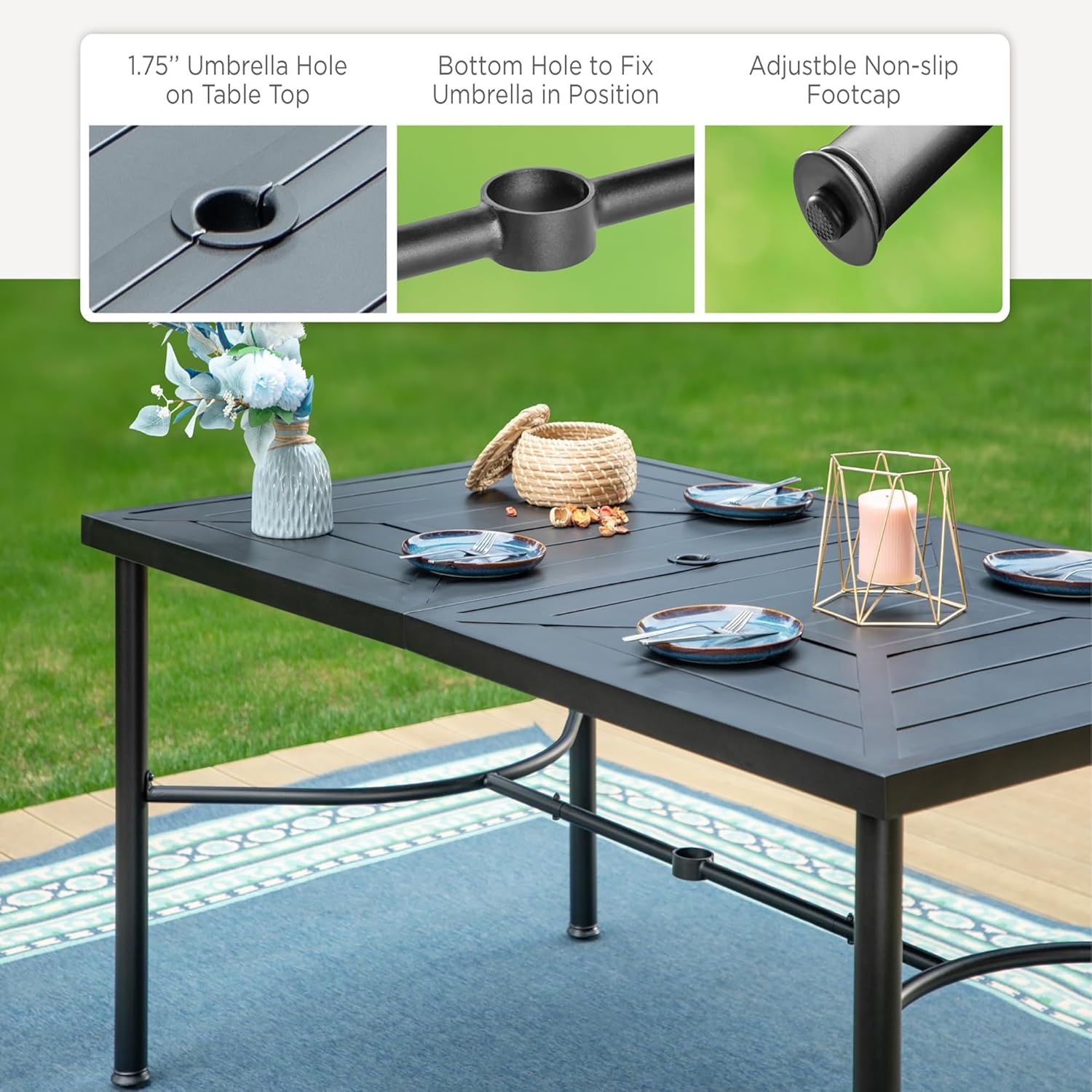 - 𝗥𝗼𝘂𝗻𝗱 𝗧𝗮𝗯𝗹𝗲 𝘄𝗶𝘁𝗵 𝗔𝗱𝗷𝘂𝘀𝘁𝗮𝗯𝗹𝗲 𝗨𝗺𝗯𝗿𝗲𝗹𝗹𝗮 𝗛𝗼𝗹𝗲: Our patio table is about 42"x29", which suits for 4 people for dining, family or friends party. The size of the umbrella hole ranges from 1.57" to 1.9", and you can insert the umbrella for shade when dining