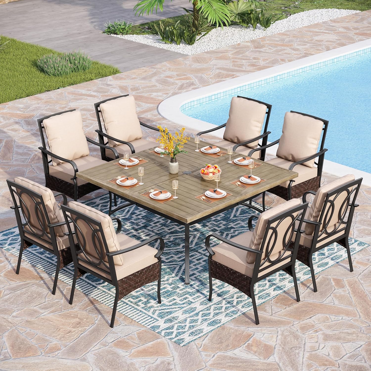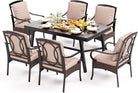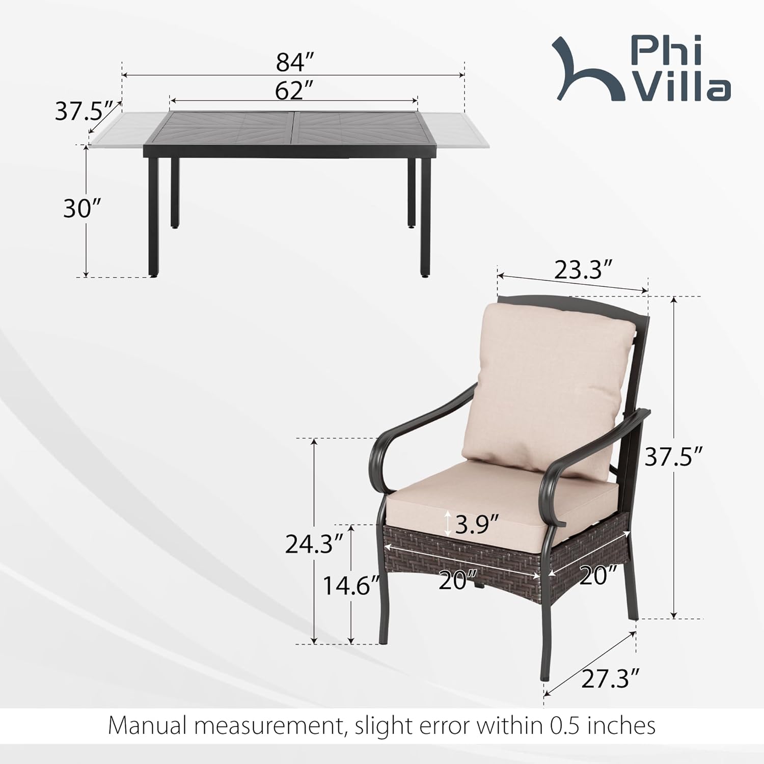 - 𝗚𝘂𝗶𝗱𝗲 𝗮𝗻𝗱 𝗦𝗲𝗿𝘃𝗶𝗰𝗲: The whole dining set comes with hardware set and instruction for assembly, and they are shipped in 4 cardboard boxes. Using a furniture cover helps prolong the usage time of the set. One-year warranty and be free to get in touch with us anytime if you have any problems after receiving the items