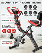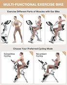 • 4-IN-1 Folding Exercise Bike for Home Workout: The upright posture of this bike provides you with high-intensity exercise, helping you burn more calories. The semi-recumbent posture offers a low-impact and more comfortable riding experience. Additionally, this bike comes with arm resistance bands (which can be attached either at the front or rear of the bike) to help tone your upper muscles and provide a complete body workout