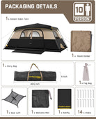 Portable camping tent for 4/6/8/10 people with instant cabin and rainproof and windproof