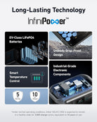 Experience reliable, high-capacity power anywhere with this Portable Power Station. Delivering 1800W continuous power and 2400W peak output, it supports a wide range of devices. Its advanced 1056Wh LiFePO4 battery ensures long-lasting performance and safety. Fully recharge in just 58 minutes, minimizing downtime and keeping you powered on the go. Ideal for outdoor adventures, emergencies, or remote work, this solar generator combines efficiency and convenience in a compact design. Stay energized wherever life takes you.