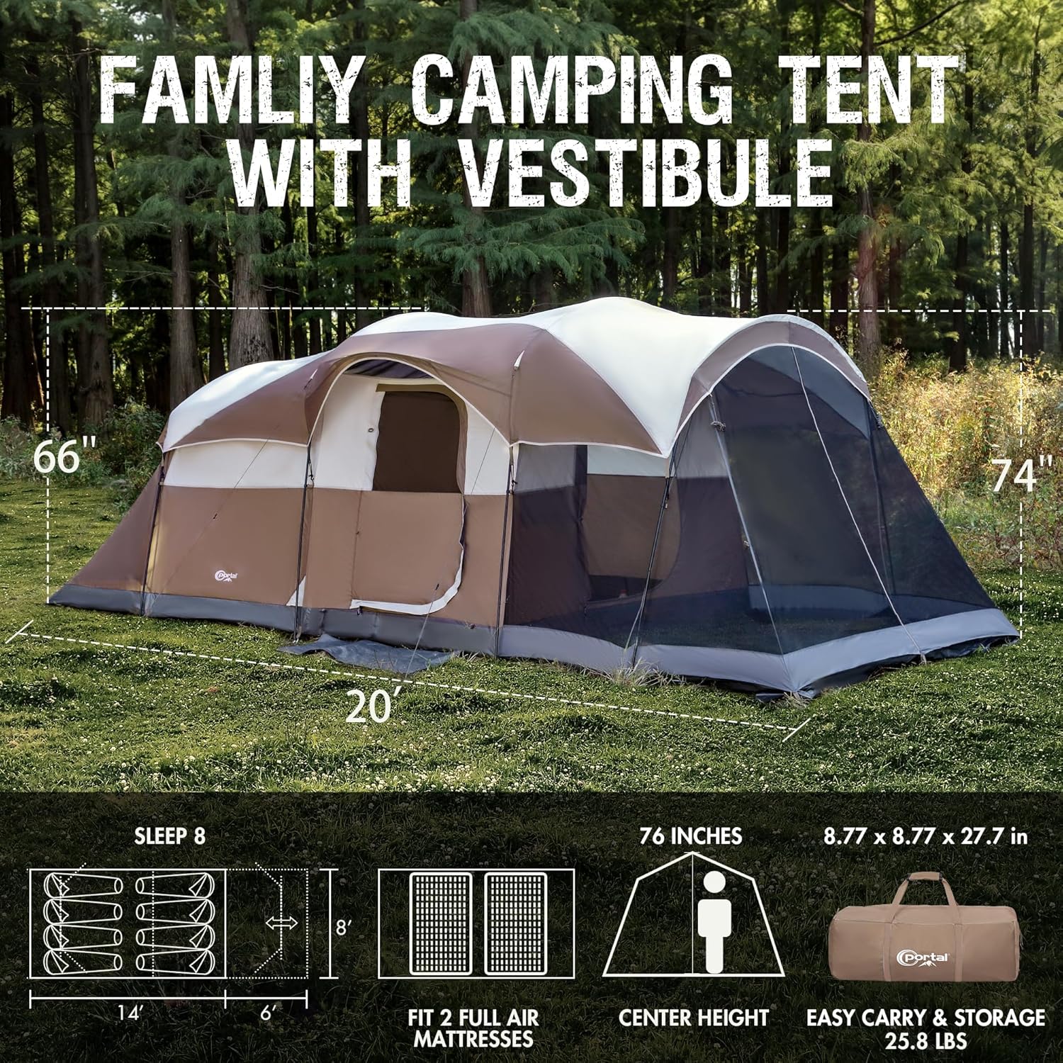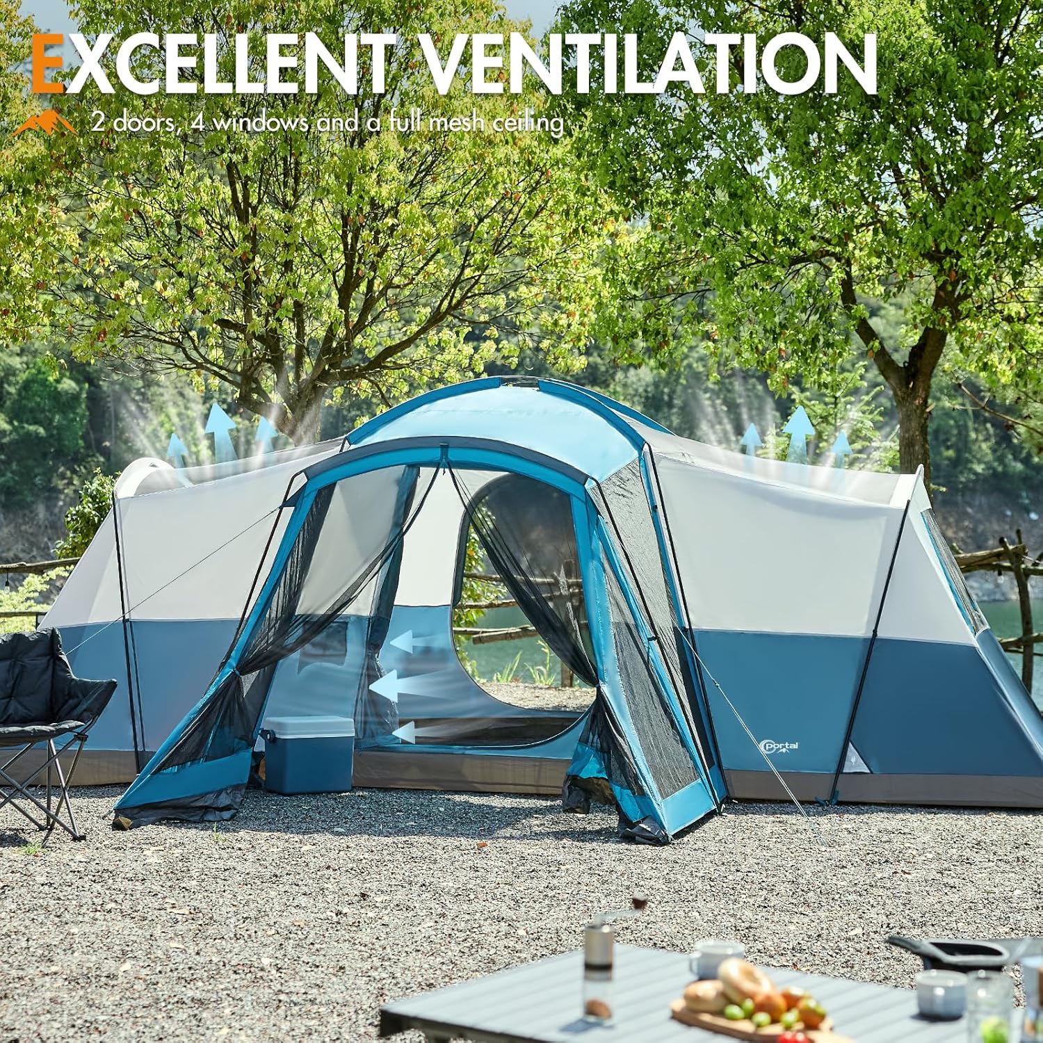 PORTAL 6/8/10 Person Family Camping Tent with Screen Room, Water Resistant Big Tunnel Tent with Rainfly, Large Family Tent for Outdoor Camping, Party