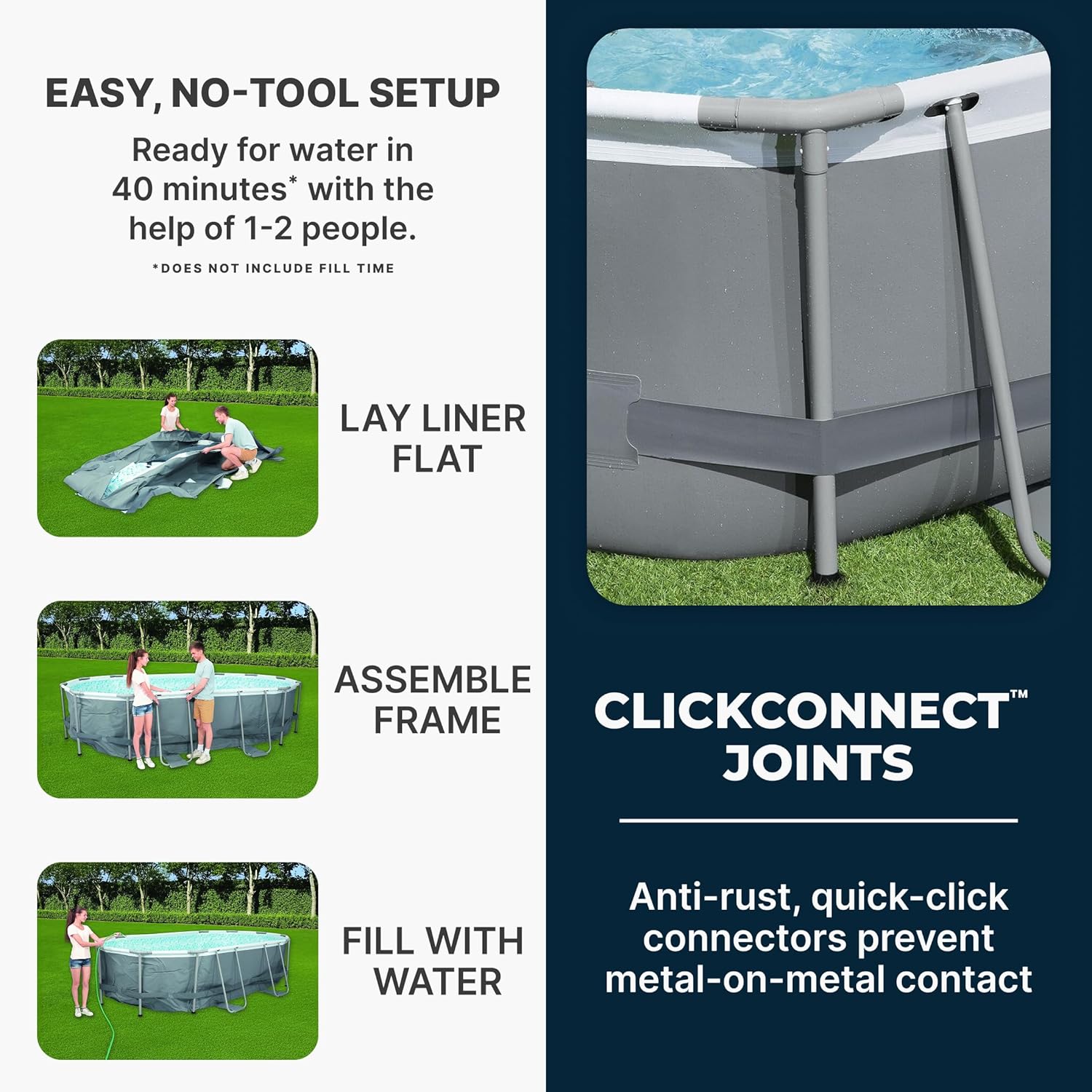 Power Steel 14' x 8'2" x 39.5" Oval Above Ground Pool Set | Includes 530gal Filter Pump, Ladder, ChemConnect Dispener