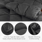 It is designed with 8 duvet loops, 4 in corners and 4 in middles, holding it securely in place.