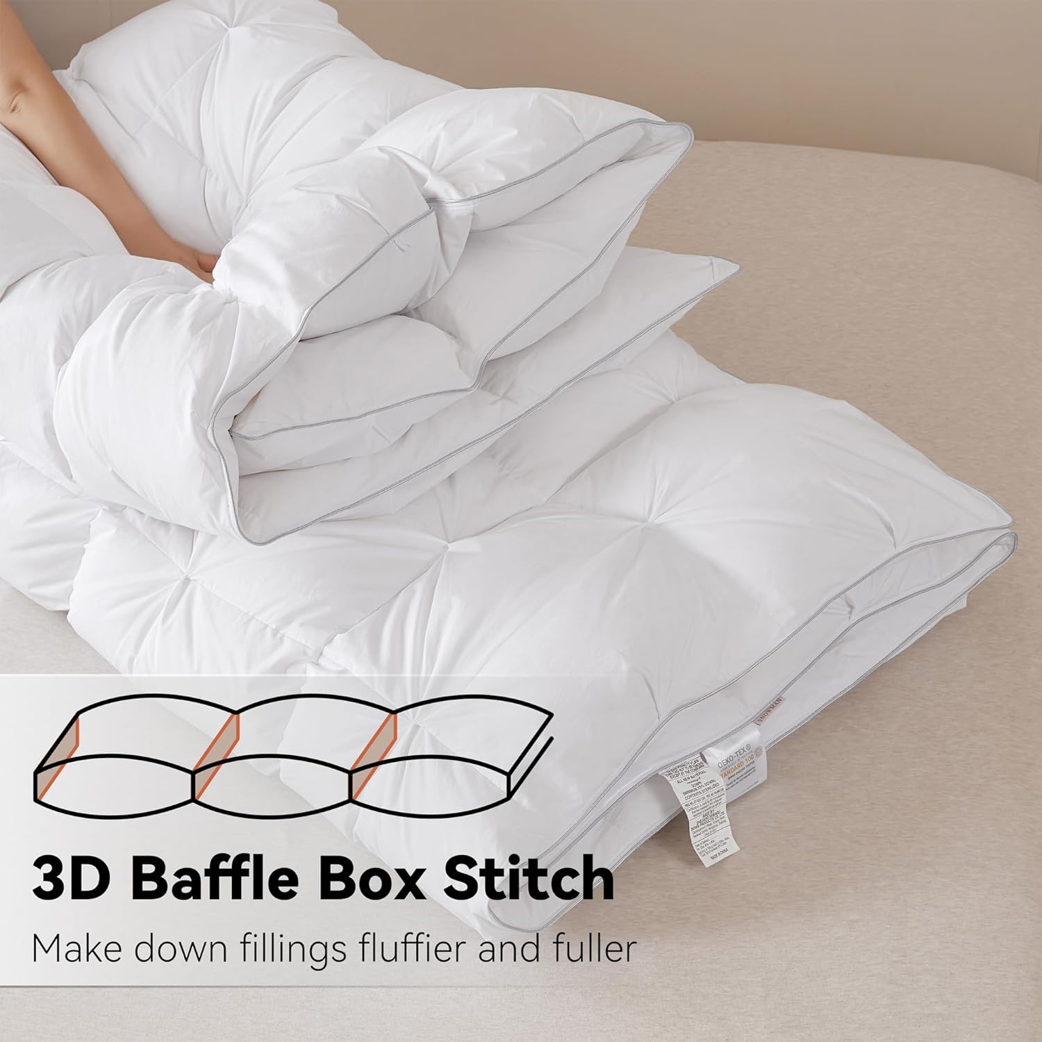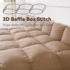 Hand-sewn 3D baffle-box construction distributes filling evenly and prevents it from shifting.