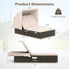 RELAX4LIFE Outdoor Daybed with Retractable Canopy - Wicker Double Chaise Lounge w/6-Position Backrest, 2 Folding Side Trays & Cushions, 2-Seater Loveseat Sunbed for Backyard, Rattan Patio Bed Lounger