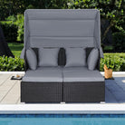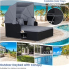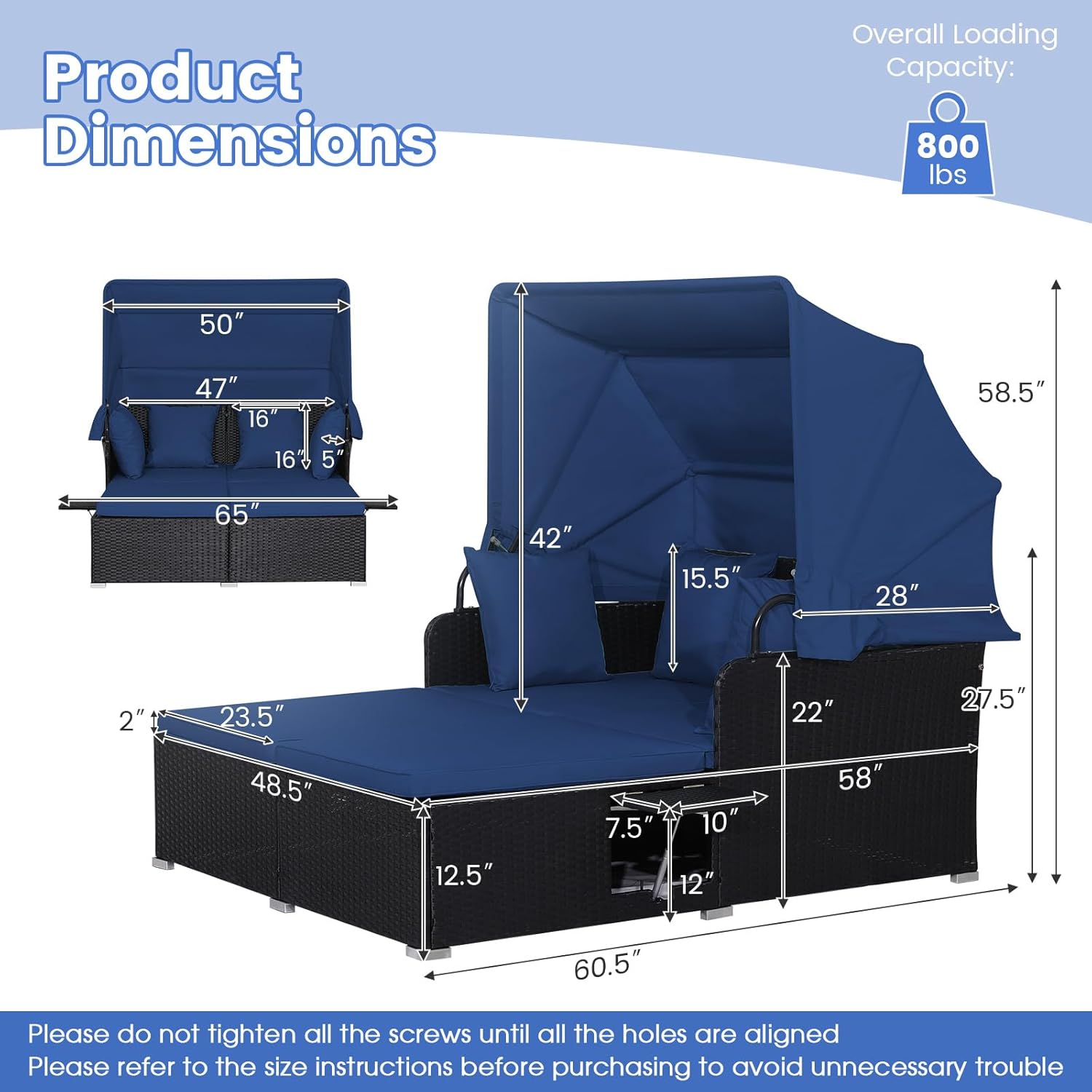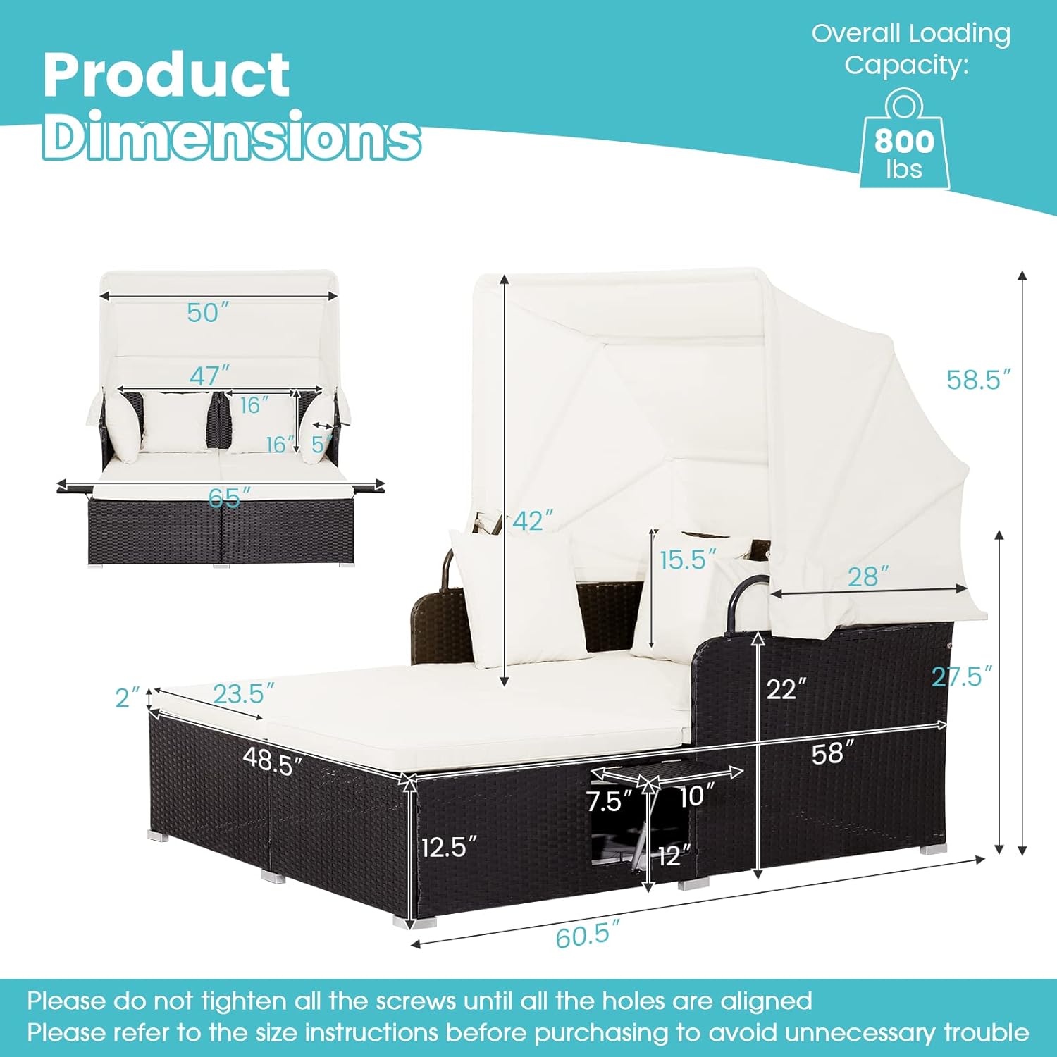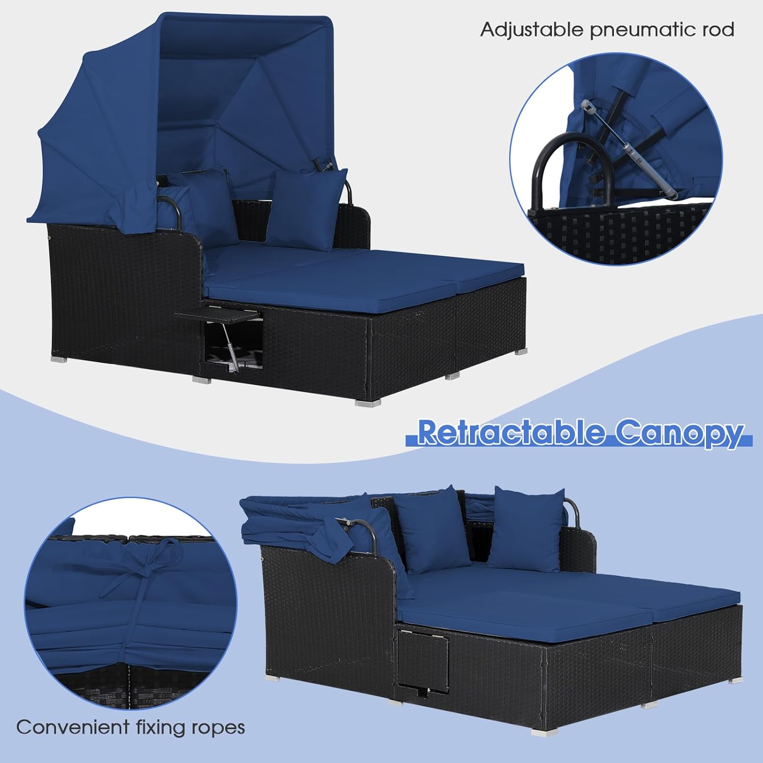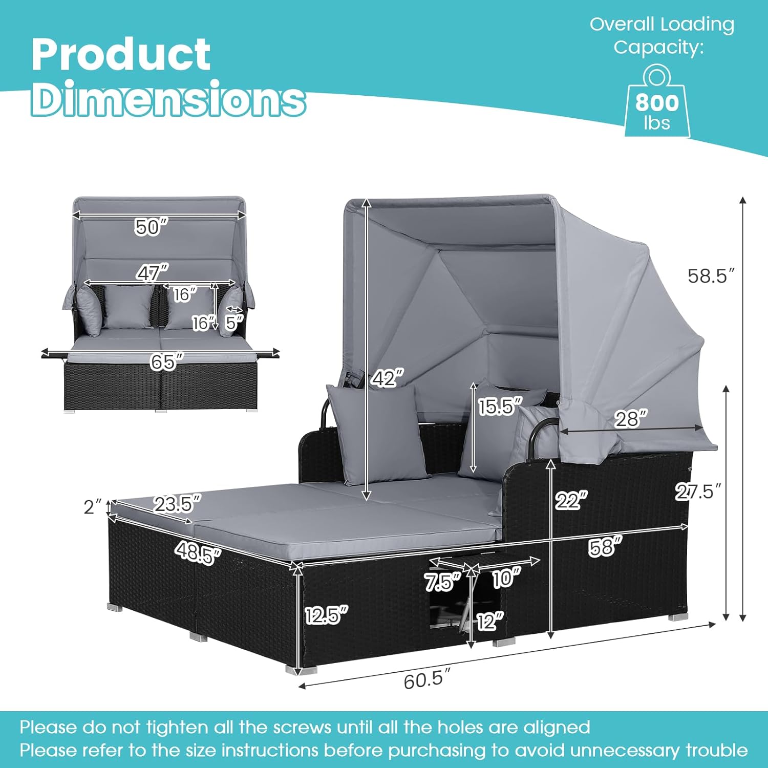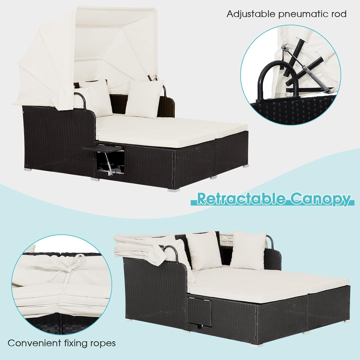 - 【Retractable Canopy with Fixing Ropes】Equipped with a retractable polyester canopy, this outdoor patio daybed provides better protection against sunlight for all seasons. You can open or close it with the adjustable gas strut, ideal for lounging in the sun, reading books in the shade or chatting with friends. Besides, the convenient fixing ropes keep the canopy in place when closed.