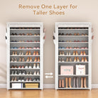 • [Shoe Rack with Dustproof Cover] This upgraded shoe rack organizer comes with a non-woven covers to protect your shoes from dust and dirt, ensuring that they stay clean and well-maintained. The shoe storage cabinet cover has 4 pockets to add more storage space for you; the covers fabric is high-quality, waterproof and easy to clean. The covers of the entryway shoe storage is removable, providing you with more choices.