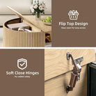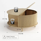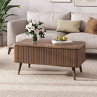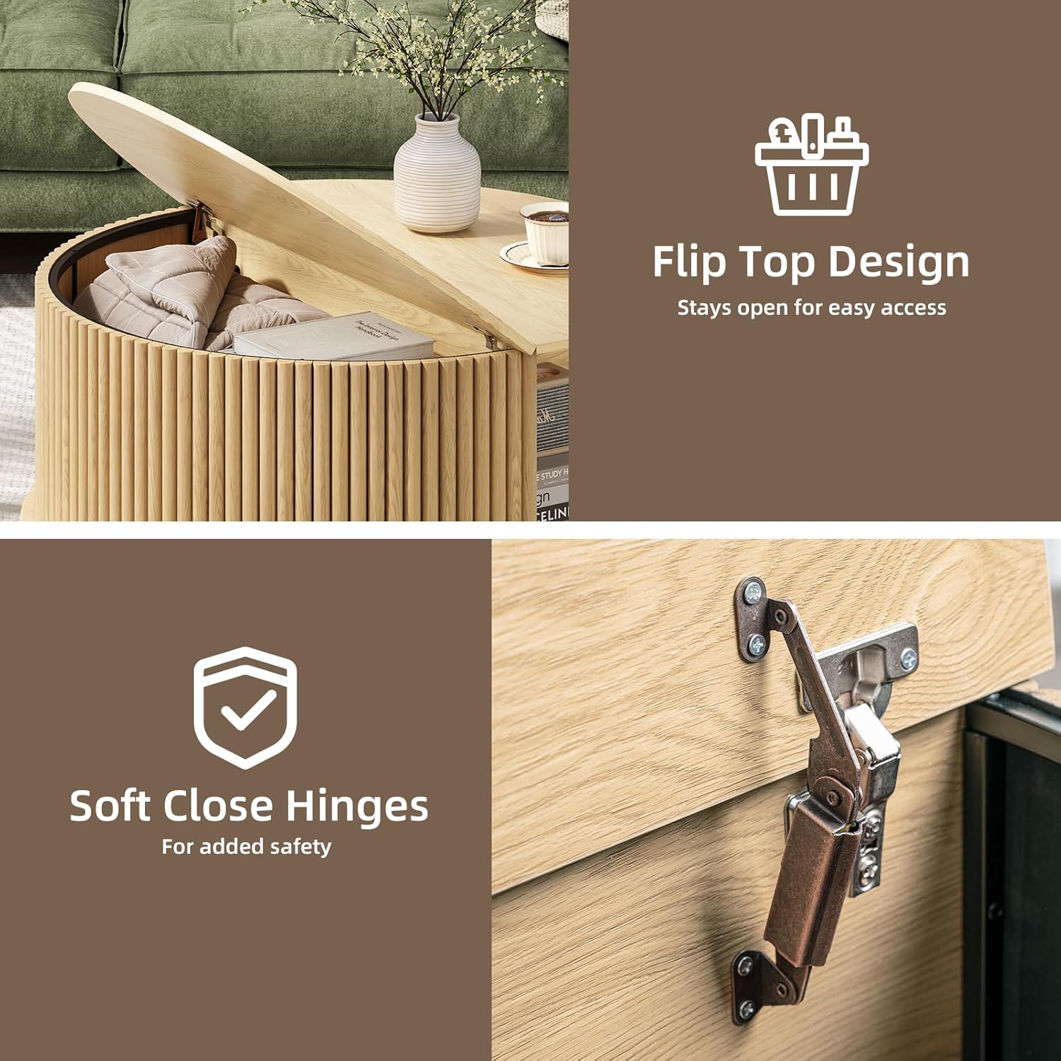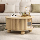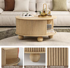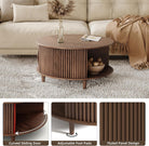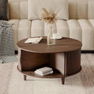 Round Coffee Table with Storage,Fluted Center Table with Sliding Cabinet Door for Living Room,Home Small Space,31.5" Small Center Table,Walnut