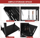 Impressive Storage: Store seasonings in the front basket, hang some cooking utensils on the integrated hooks, place plates and other food on the side tables, and meanwhile put your charcoal on the bottom storage shelf