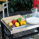 This mobile, dining work table is perfect for temporarily placing in your backyard, kitchen necessities that are ready for use.