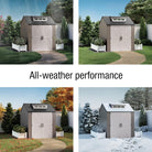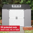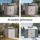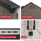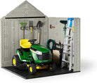 The Rubbermaid 7x7 ft Storage Shed is faster and easier to assemble*! With 33% fewer parts yet 50% stronger roof and walls*,this shed provides all-weather durability including supporting heavier snowfall*. Doors open a full 180°for convenient access to large stored items such as a riding lawn mower, gardening tools, sporting equipment and more. This shed has 50% more ventilation for improved air flow* and can be locked for added security.