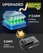 - 【Rechargeable Battery System】The Saker Cordless Garden Tiller is equipped with two 22V 2.0Ah rechargeable lithium-ion batteries. Each battery offers up to 30 minutes of runtime, allowing for extended gardening sessions with minimal interruptions.