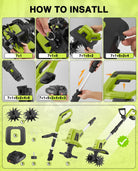 - 【Powerful Performance & Efficiency】Powered by a high-performance motor, the Saker Cordless Garden Tiller operates at 270RPM with 4 durable steel tines. It provides a tilling width of 9 inches and a depth of 6.3 inches, making it ideal for soil preparation, aeration, and effective weeding.