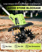 - 【Dual Safety Protection】Safety is a priority with the Saker Cordless Garden Tiller, which includes a safety button and trigger that must be engaged simultaneously to operate. This dual protection mechanism prevents accidental activation, keeping you and your loved ones safe during use.